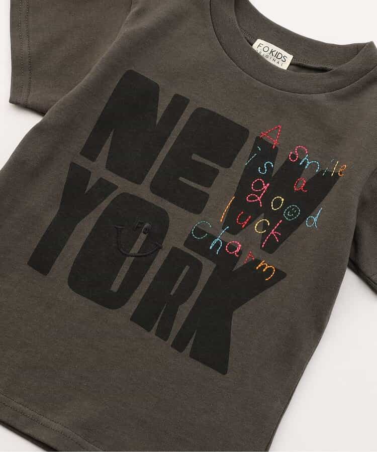 F.O.KIDS(エフオーキッズ)の半袖Tシャツ「ロゴ×ステッチワークTシャツ」で、アメカジテイストにユーズド感を加えた風合いあるデイリーカジュアルスタイルを楽しもう!アメカジテイストの子供服・ベビー服ならF.O.KIDSにおまかせ!