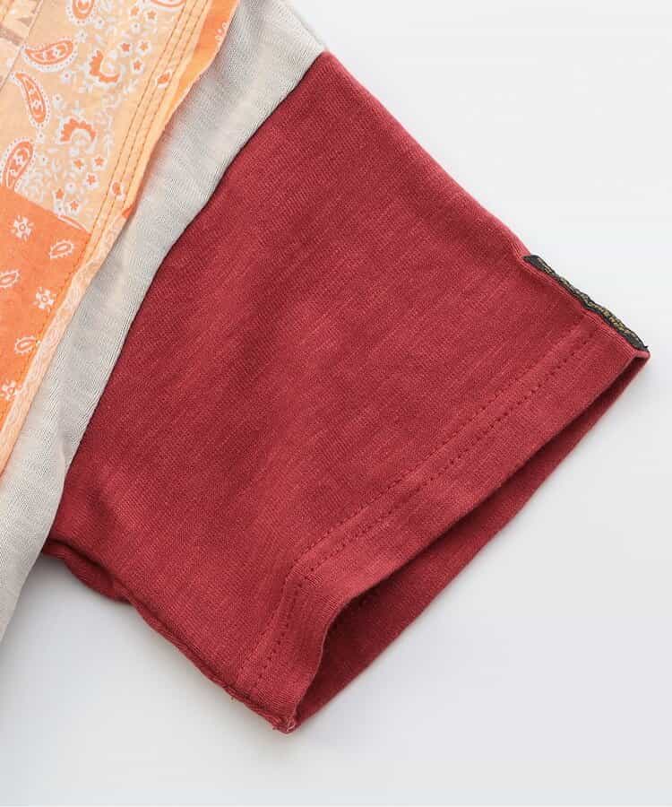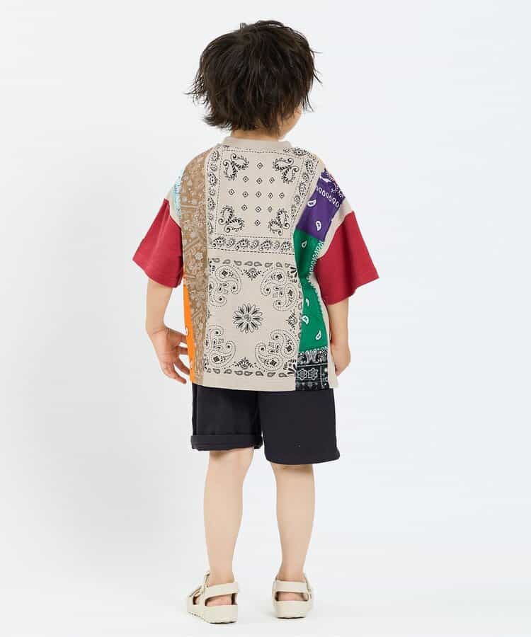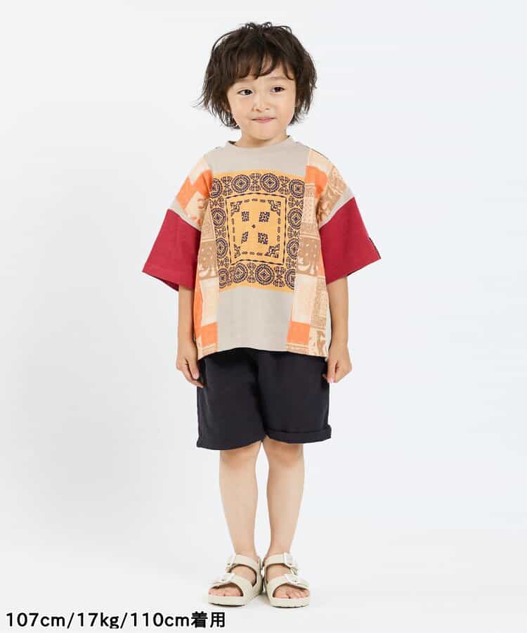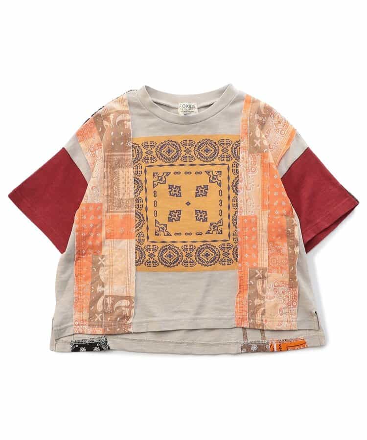 F.O.KIDS(エフオーキッズ)の半袖Tシャツ「バンダナパッチワークTシャツ」で、アメカジテイストにユーズド感を加えた風合いあるデイリーカジュアルスタイルを楽しもう!アメカジテイストの子供服・ベビー服ならF.O.KIDSにおまかせ!<お取り扱いのご注意>この商品は、自然なラフ感を表現する為、断切り部分をそのまま残して企画しました。断切り部分は着用や洗濯により自然なホツレや多少のゆるみ等が生じます。糸端が出た際は、その都度ハサミで丁寧にカットして下さい。