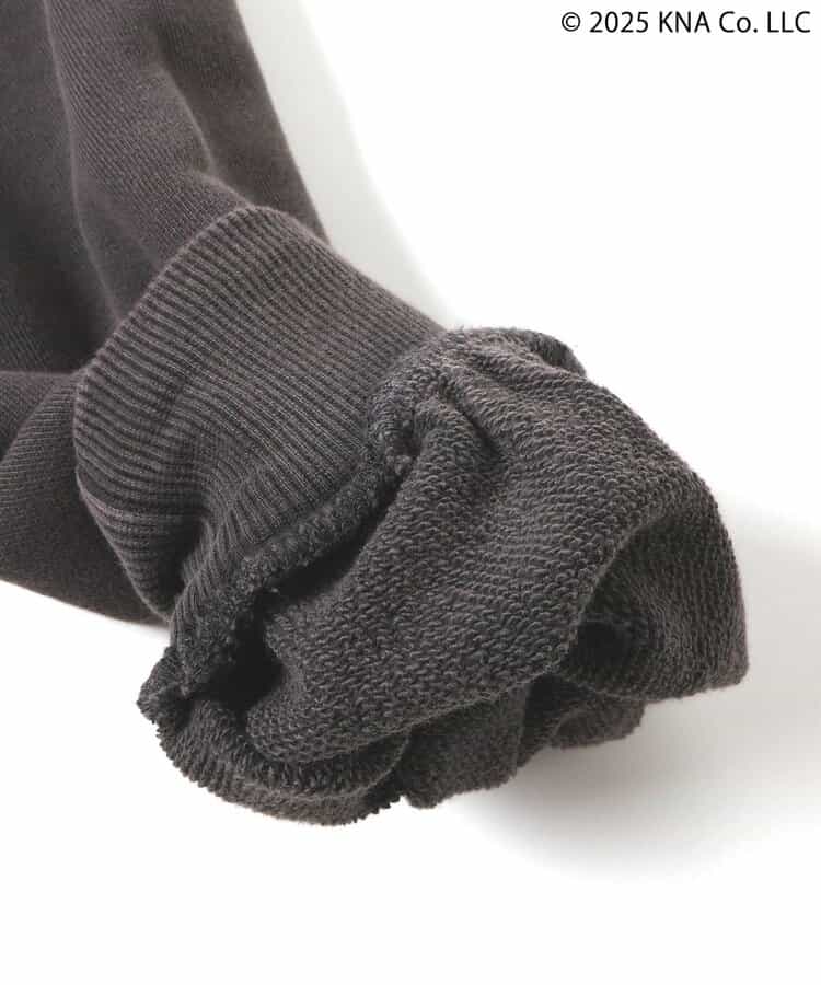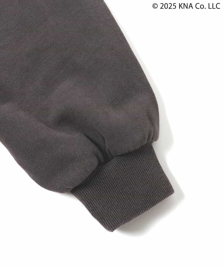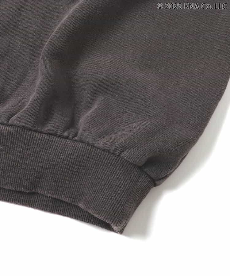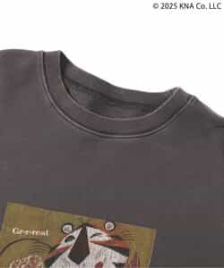 チャコール、ターコイズブルーカラーは、どこか懐かしさを感じさせる「フロステッド フレーク」の広告風アートで、ヴィンテージ好きにもたまらない一着に。