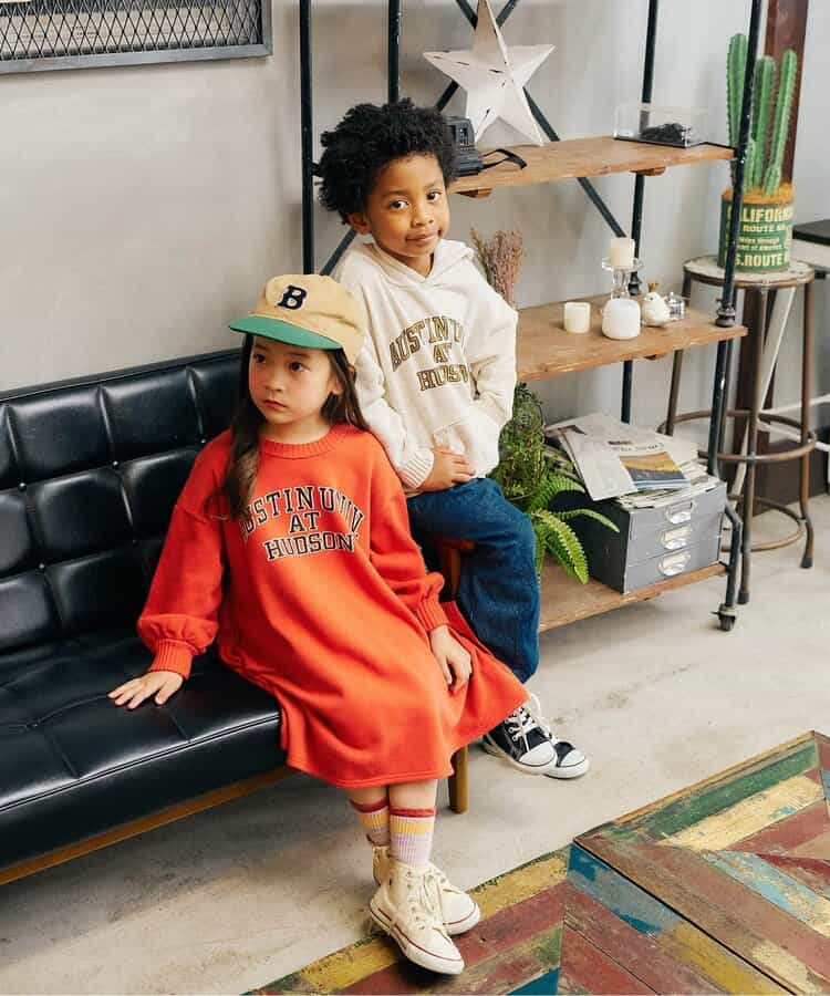 【9/18(木)21:00~販売】F.O.KIDS(エフオーキッズ)のワンピース「【リンク】カレッジロゴワンピース」で、アメカジテイストにユーズド感を加えた風合いあるデイリーカジュアルスタイルを楽しもう!アメカジテイストの子供服・ベビー服ならF.O.KIDSにおまかせ!