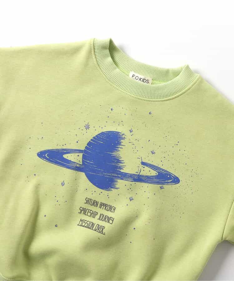 F.O.KIDS(エフオーキッズ)のトレーナー「サターン トレーナー」で、アメカジテイストにユーズド感を加えた風合いあるデイリーカジュアルスタイルを楽しもう!アメカジテイストの子供服・ベビー服ならF.O.KIDSにおまかせ!