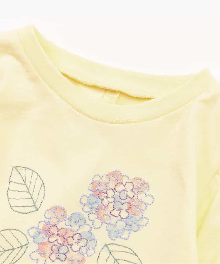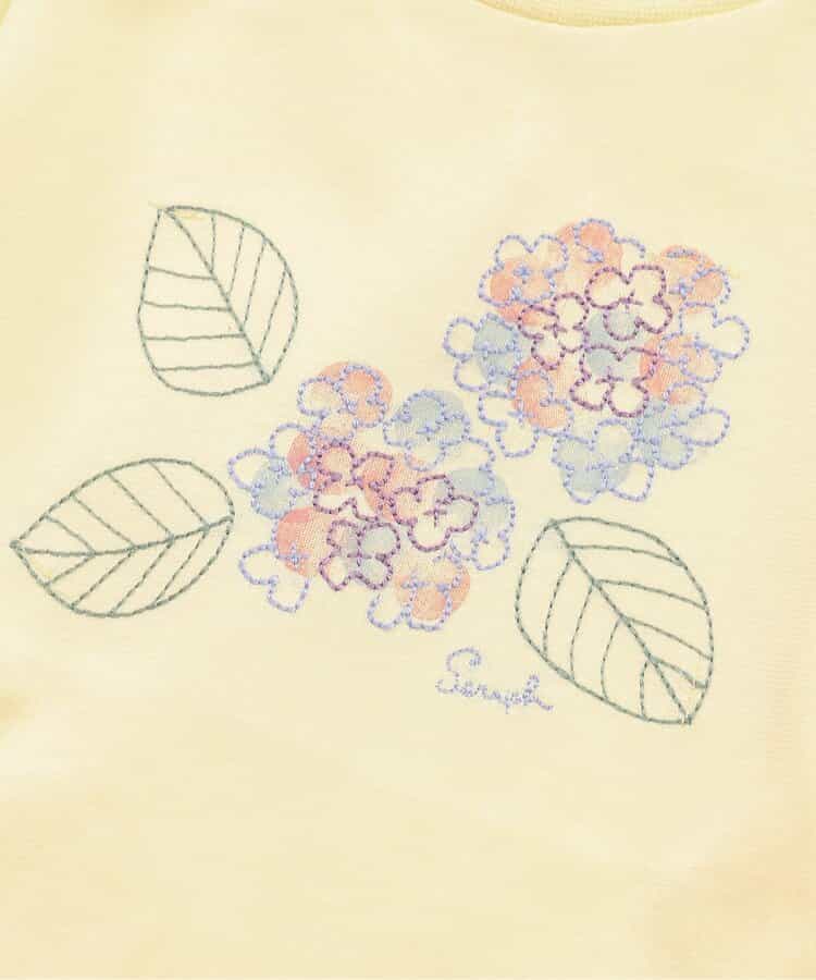 Seraph(セラフ)の半袖Tシャツ「デイリーあじさいモチーフTシャツ」は、シンプルなテキスタイルと優しい色使いでナチュラルテイストのおしゃれにおすすめです!