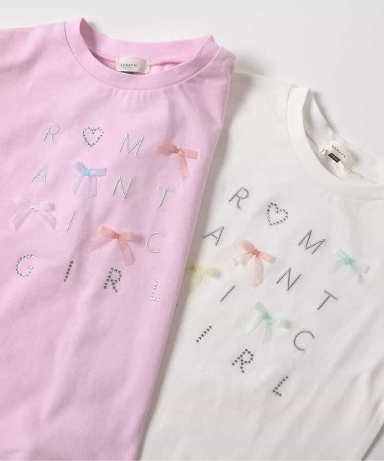 Seraph(セラフ)の半袖Tシャツ「キラキラモチーフトップス」は、シンプルなテキスタイルと優しい色使いでナチュラルテイストのおしゃれにおすすめです!