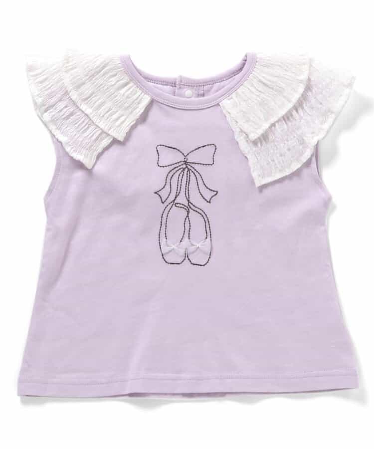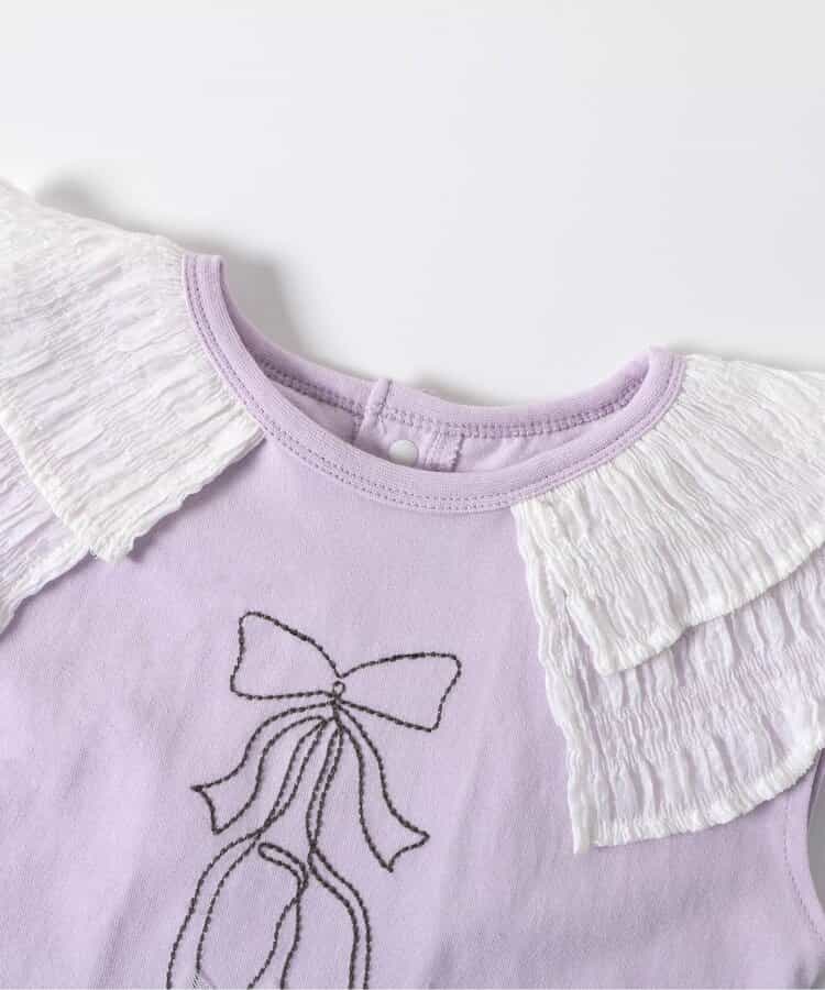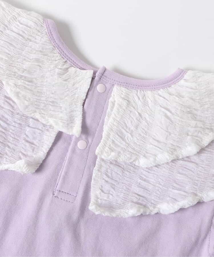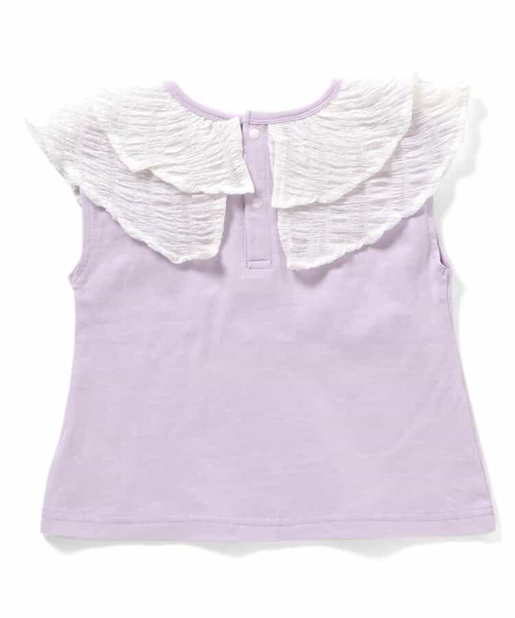 Seraph(セラフ)の半袖Tシャツ「フリルカラー モチーフ刺繍Tシャツ」は、シンプルなテキスタイルと優しい色使いでナチュラルテイストのおしゃれにおすすめです!