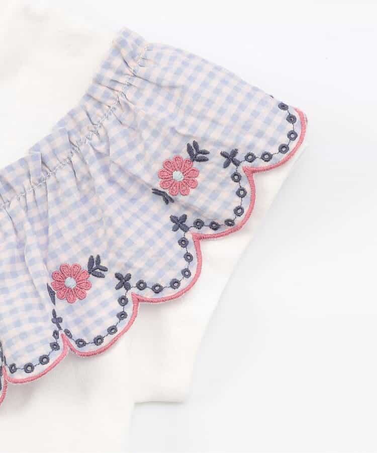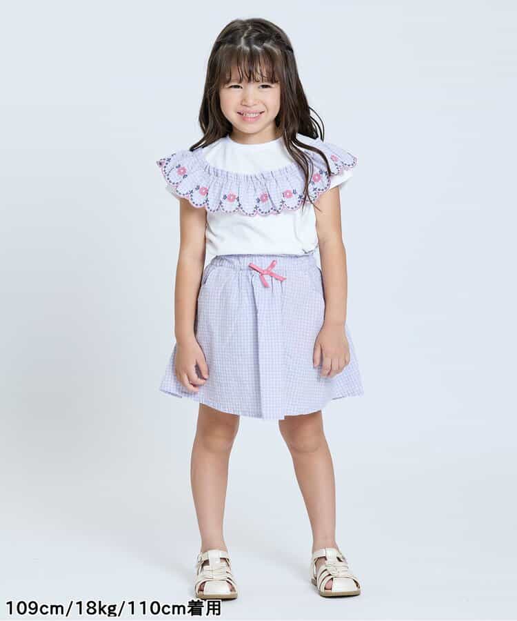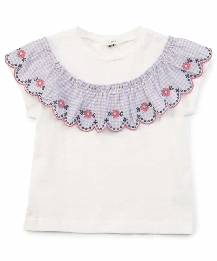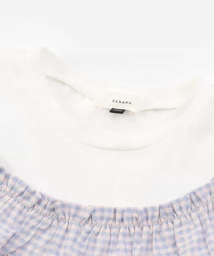 Seraph(セラフ)の半袖Tシャツ「【リンク】ガーリーチェックフリルTシャツ」は、シンプルなテキスタイルと優しい色使いでナチュラルテイストのおしゃれにおすすめです!