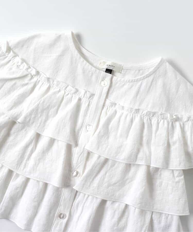 【2/10(火)21:00~販売】Seraph(セラフ)のシャツ・ブラウス「羽織にもなる前あきフリルブラウス」は、シンプルなテキスタイルと優しい色使いでナチュラルテイストのおしゃれにおすすめです!<お取り扱いのご注意>この商品は顔料プリントを使用しています。次の事にご留意の上、お買い求めください。○着用の際、摩擦により他の物に移染することがあります。また、汗や雨で湿った場合も移染しますのでご注意下さい。○淡い色との重ね着には注意して下さい。○洗濯の際、色落ちしますので裏返しにして単品洗いをして下さい。○他の商品に移染する可能性がありますので濡れたままの放置はお避け下さい。○他の衣類に色移りした場合は直ちに洗濯して下さい。○ご使用を繰り返すことにより色が徐々に落ち白っぽくなります。○色の出方・風合いが一枚ずつ異なりますが、これはこの加工の特徴です。