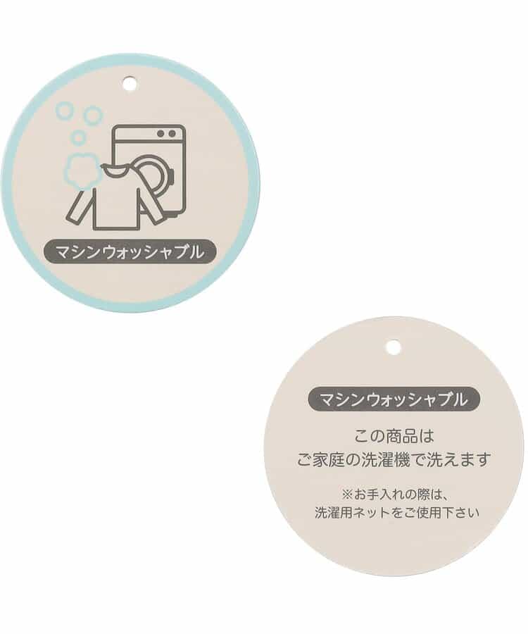 40℃を上限に洗濯機で洗濯、デリケートアイテムモード、ネット使用、漂白剤禁止、色物は同系の色と一緒に、洗濯後直ちに取出し、タンブル乾燥不可、日陰で平干し、アイロン禁止、商業ドライクリーニング不可