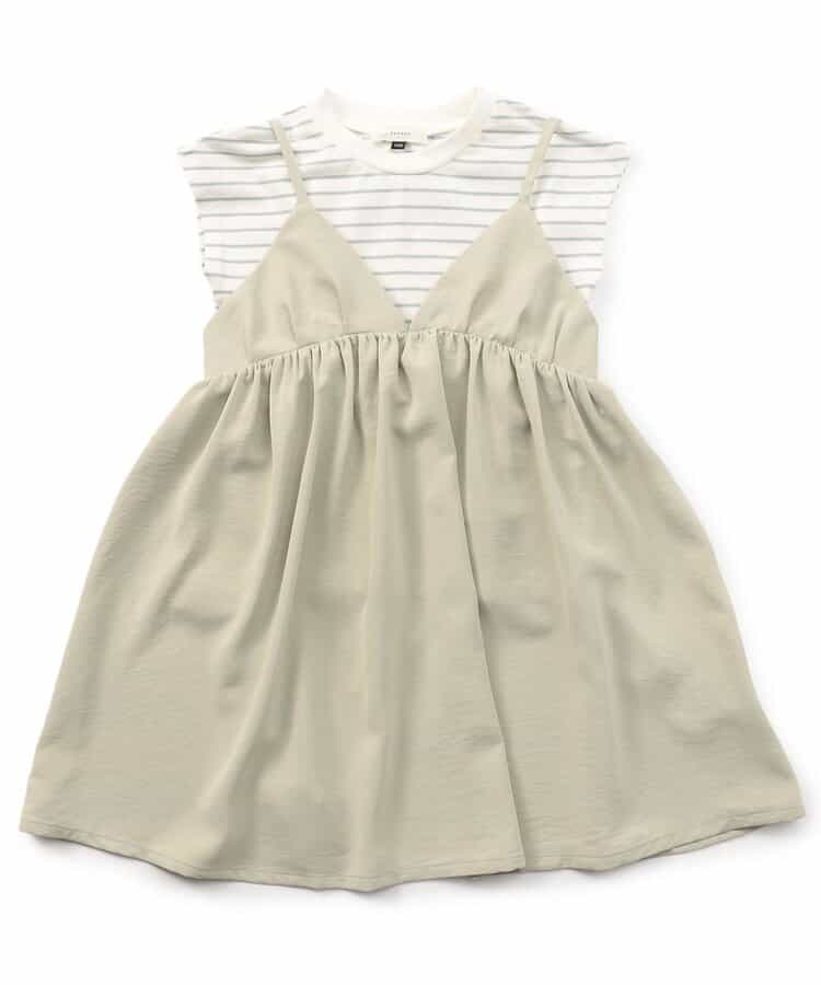Seraph(セラフ)のワンピース「フレンチスリーブTシャツ キャミソールワンピースセット」は、シンプルなテキスタイルと優しい色使いでナチュラルテイストのおしゃれにおすすめです!