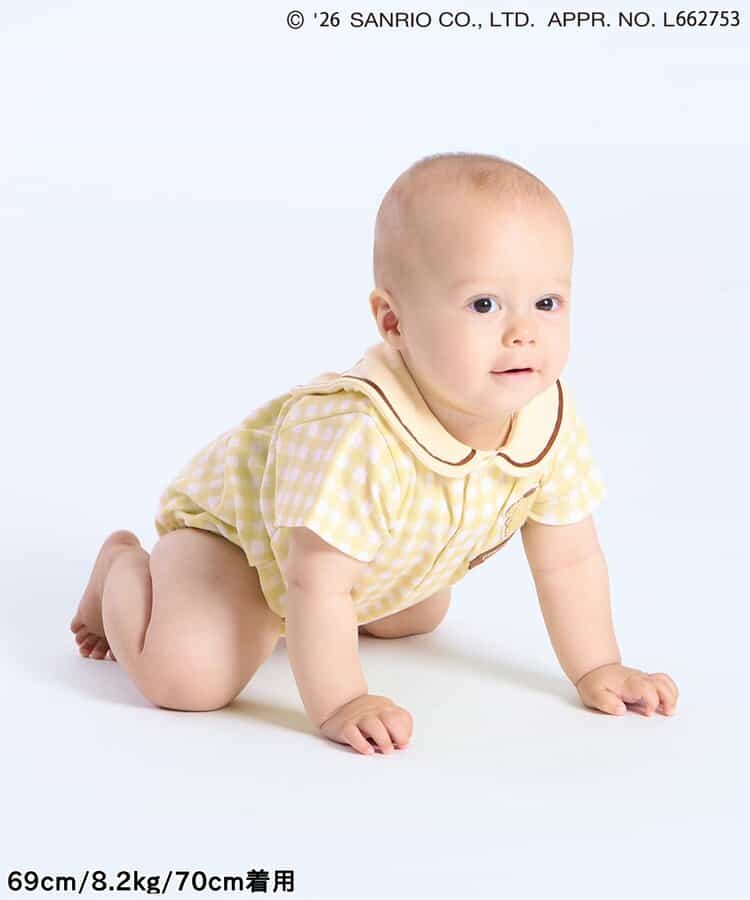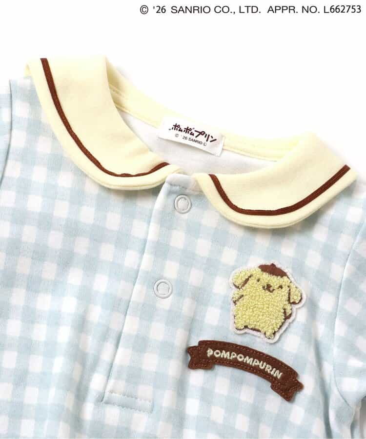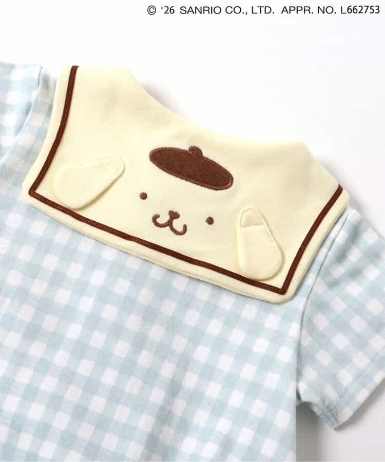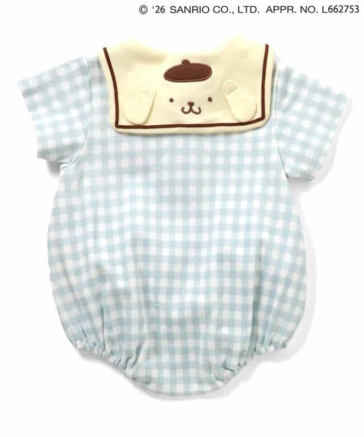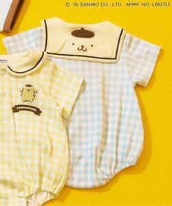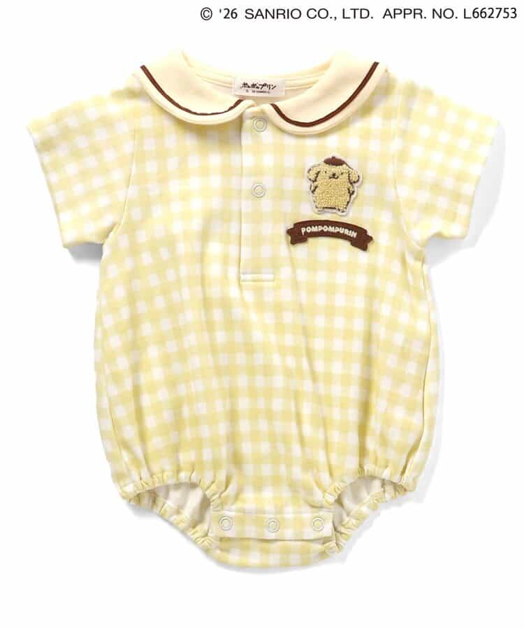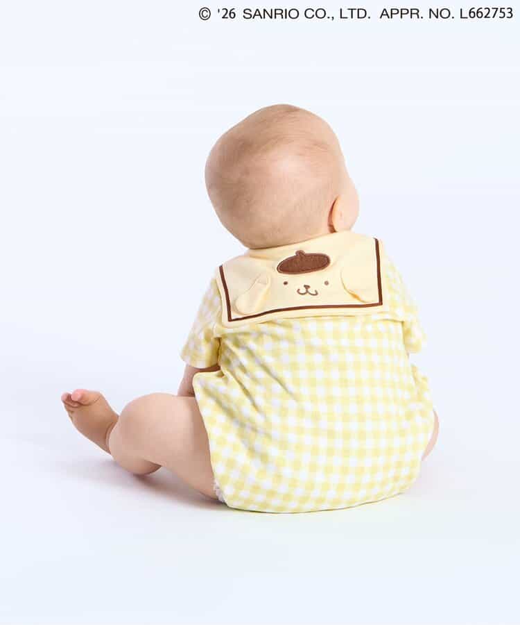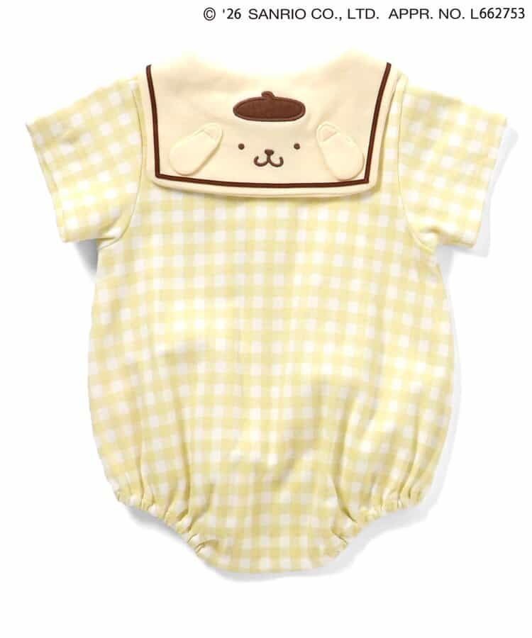 【2/10(火)21:00~販売】やさしいカラーのギンガムチェックがとっても爽やか♪ミントとイエローの2色展開で、夏にぴったりなロンパースが登場!後ろのセーラーカラーにはポムポムプリンのお顔デザイン!後ろ姿までかわいい、写真映えもバッチリなアイテムでギフトにもおすすめ◎