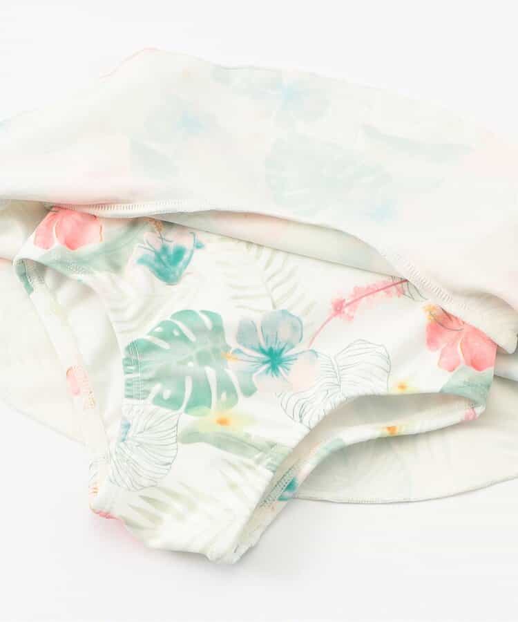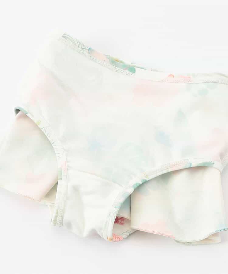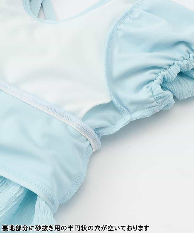 Seraph(セラフ)の水着・ビーチアイテム「リゾート フリルセパレート水着」は、シンプルなテキスタイルと優しい色使いでナチュラルテイストのおしゃれにおすすめです!こちらの商品はUV加工(紫外線遮蔽率90%以上)が施されております。 ※目の細かい生地のインナーショーツの為、肌当たりも優しい仕様となっています。 ※裏地部分の半円状の穴につきましては、【砂抜き部分】となっております。 水着に入った小さな砂をここから抜けるような仕様ですので、不良品ではございません。