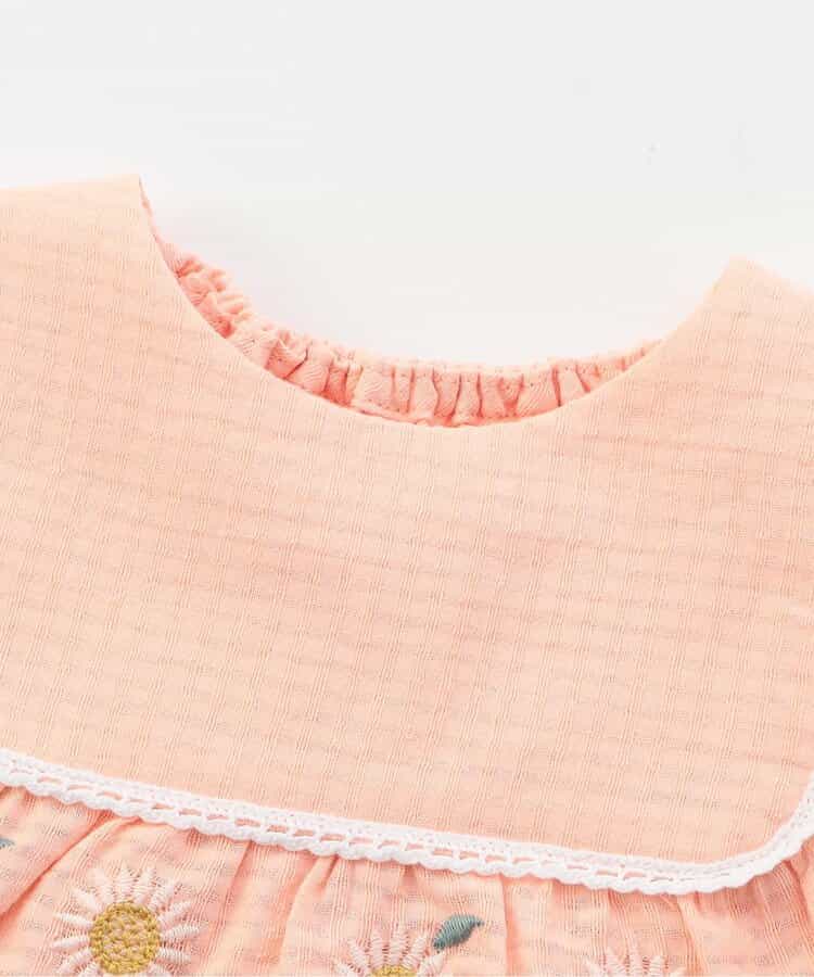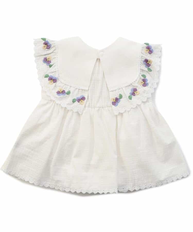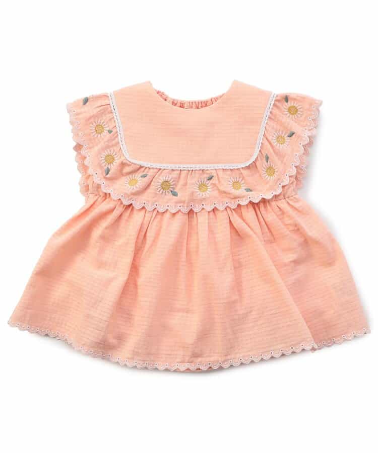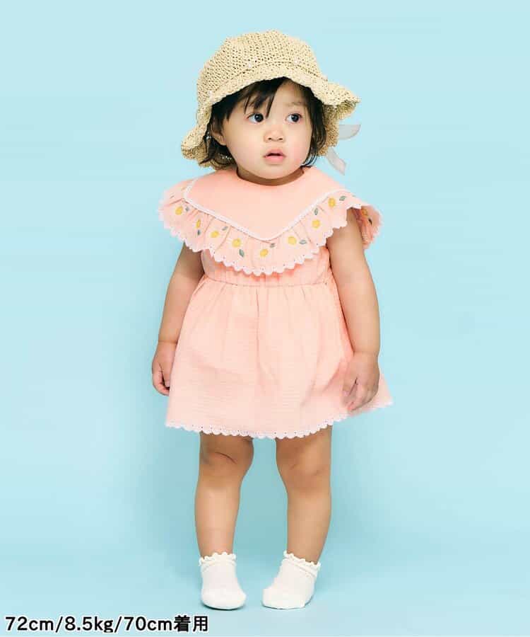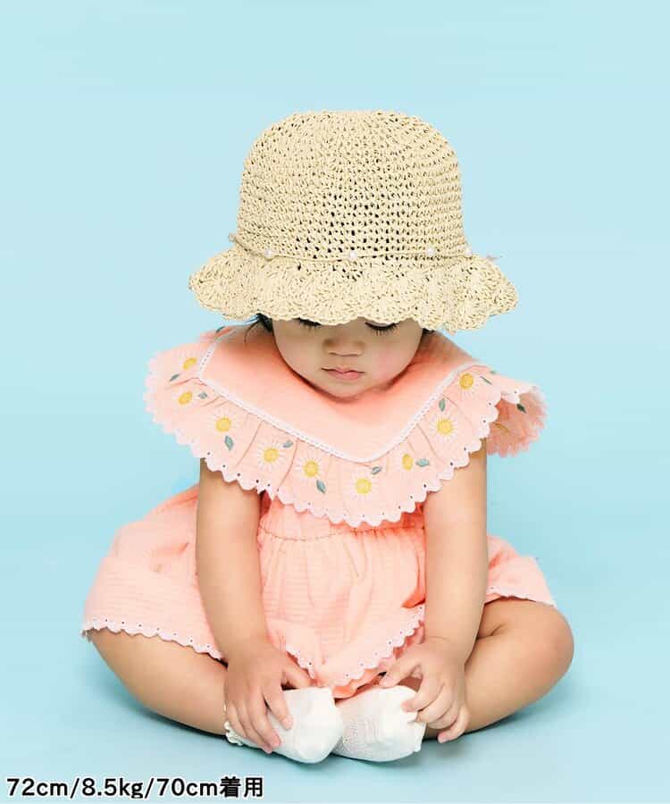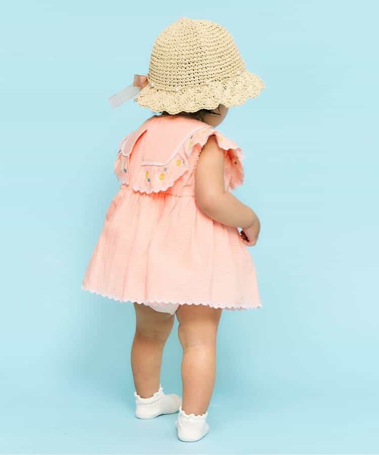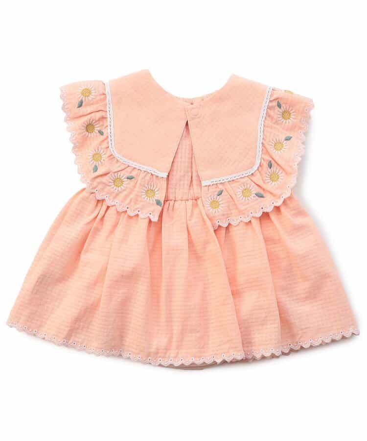 Seraph(セラフ)のカバーオール・ロンパース「【リンク】襟お花刺繍デザインカバーオール」は、シンプルなテキスタイルと優しい色使いでナチュラルテイストのおしゃれにおすすめです!出産祝いにもどうぞ!