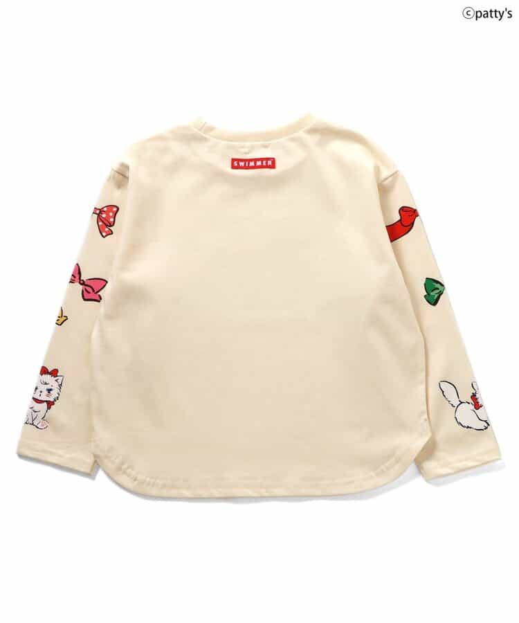 着まわしやすいデザインながら、袖にはリボンやネコのモチーフをあしらい、