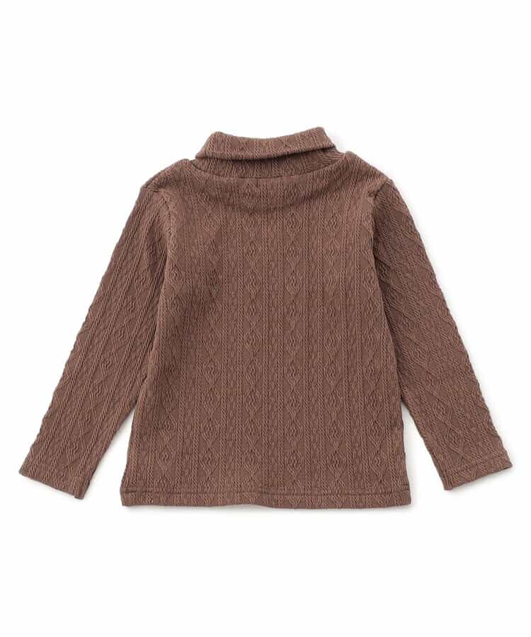 Seraph(セラフ)の長袖Tシャツ「ケーブルジャガードハイネックトップス」は、シンプルなテキスタイルと優しい色使いでナチュラルテイストのおしゃれにおすすめです!