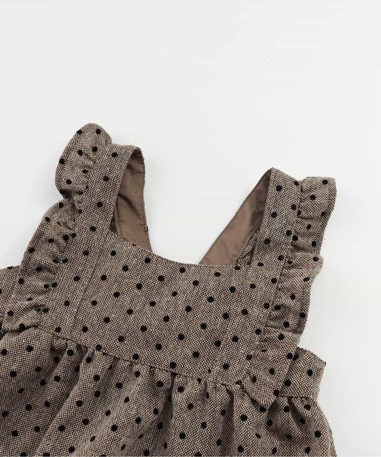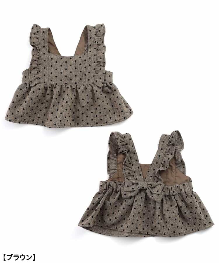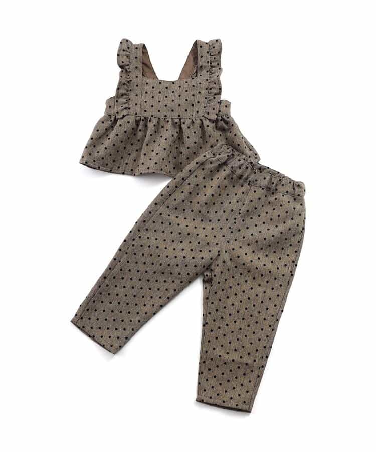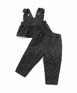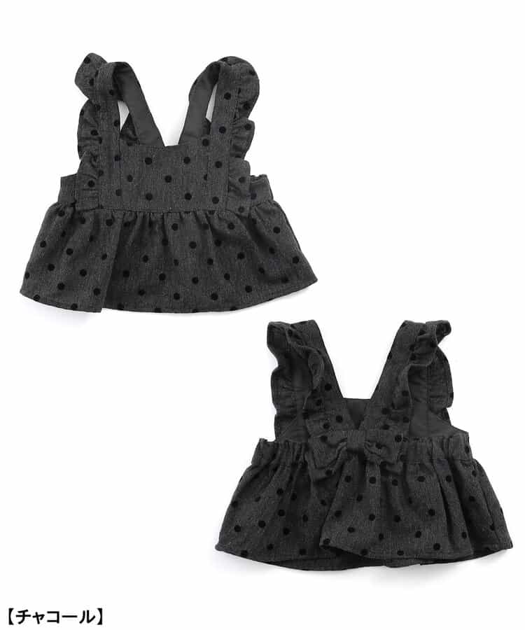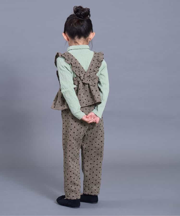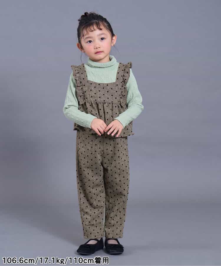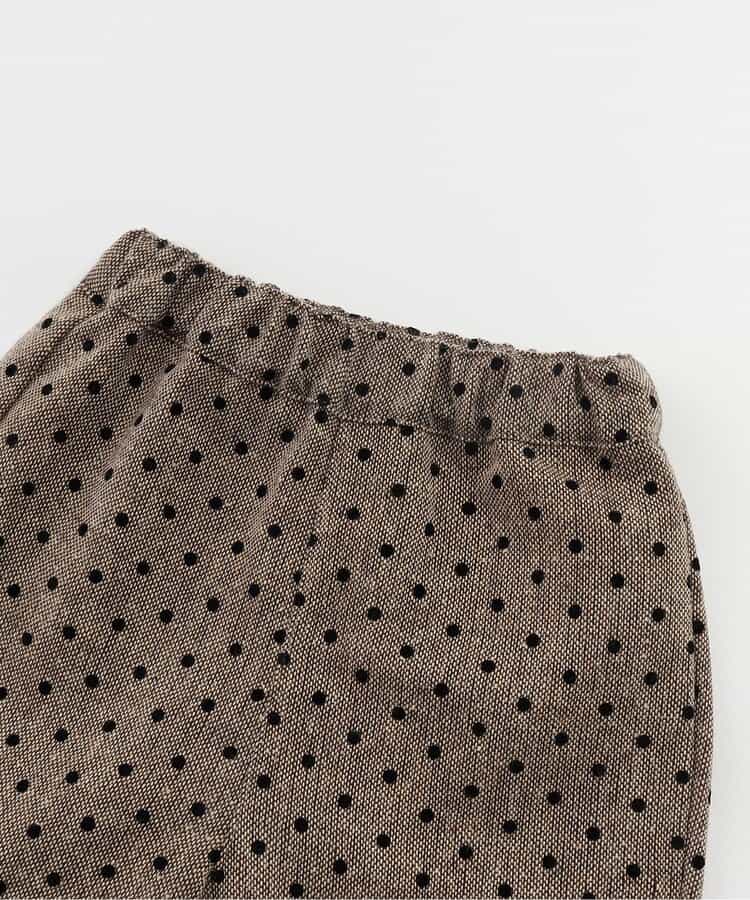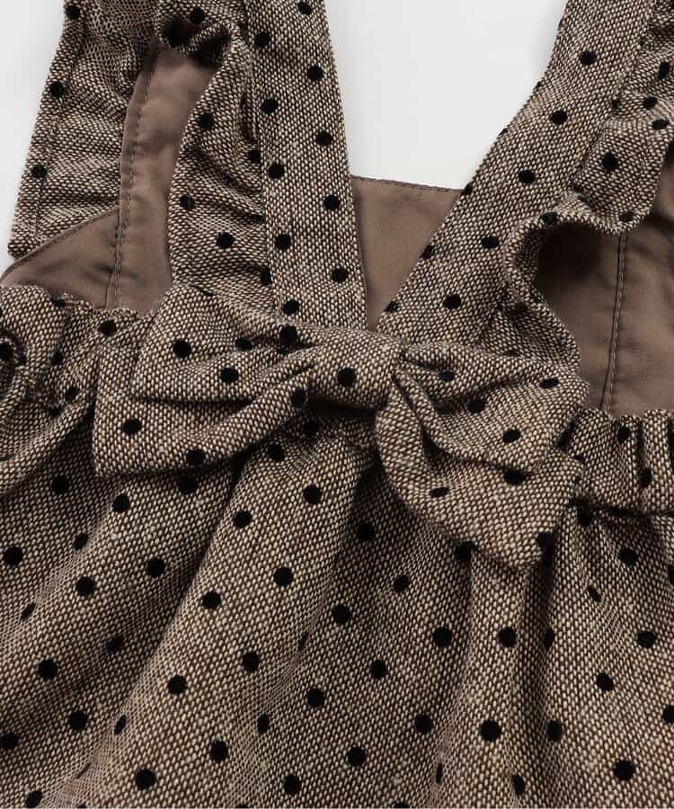 Seraph(セラフ)のパンツ「ドット柄サロペット風セットアップ」は、シンプルなテキスタイルと優しい色使いでナチュラルテイストのおしゃれにおすすめです!
