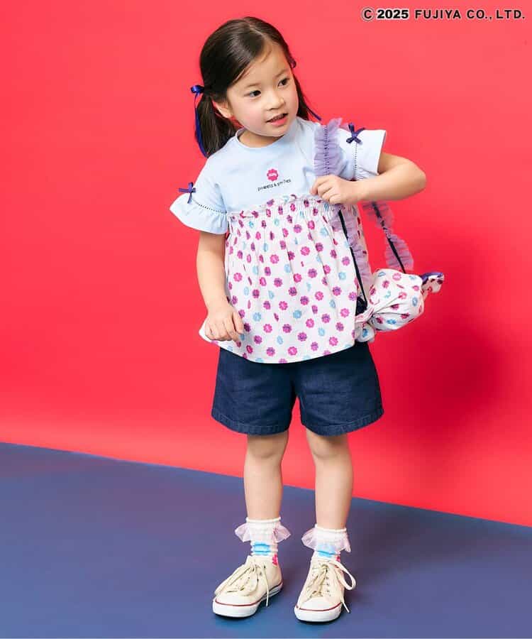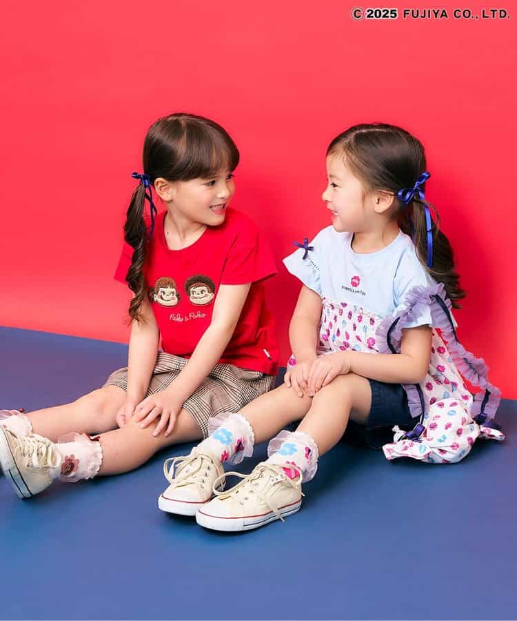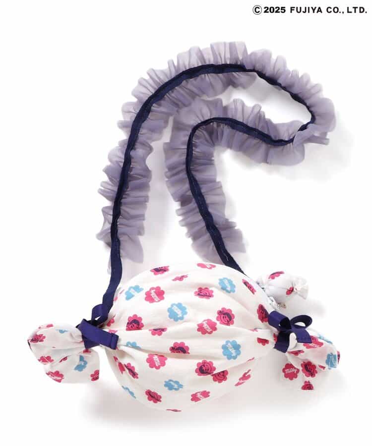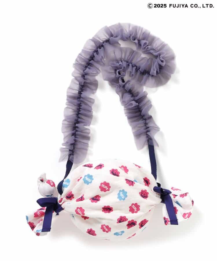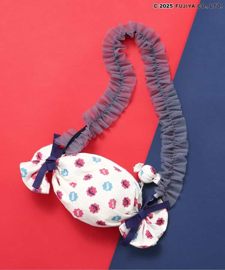 【7/9(水)21:00~販売】【Peko & Poko】ミルキーポシェット ころんとミルキーをイメージしたキャンディ型がとびきりキュート♪ミルキー包み紙風の総柄をあしらった、ペコちゃんらしさいっぱいのポシェットが登場!両サイドの結び目リボンや、ぴょこんとのぞくミルキーチャームがアクセント!肩紐はフリルテープで、持つだけでコーデが一気に甘く華やかに♪チュニックやブルマ、ソックスなど同シリーズのアイテムと合わせて、トータルでのリンクスタイリングもおすすめです◎ギフトにもぴったりな、持って歩きたくなるキャンディ型バッグです!