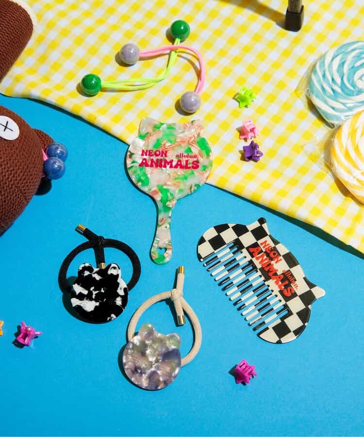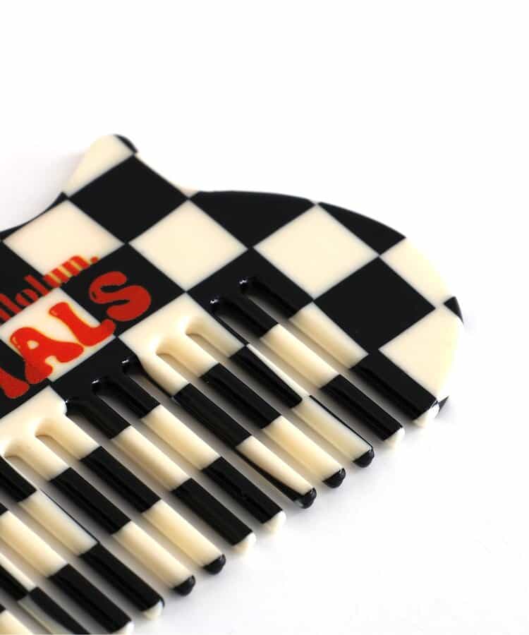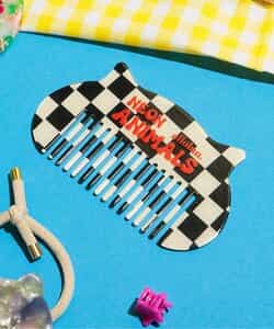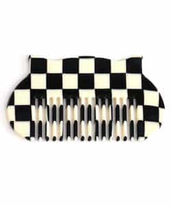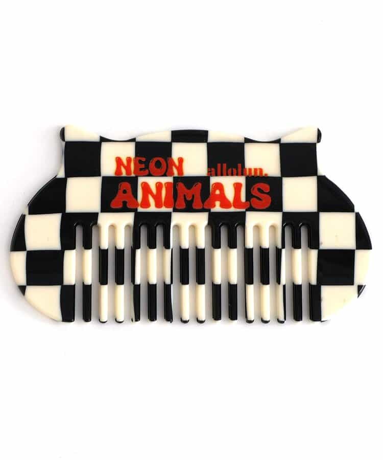 耳とチェッカー柄がかわいい、ねこの形のコーム。 薄くてポーチにも入るので持ち運びも便利です。 オレンジ色のコレクションロゴがポイント!