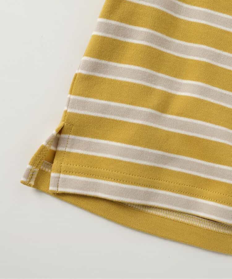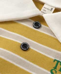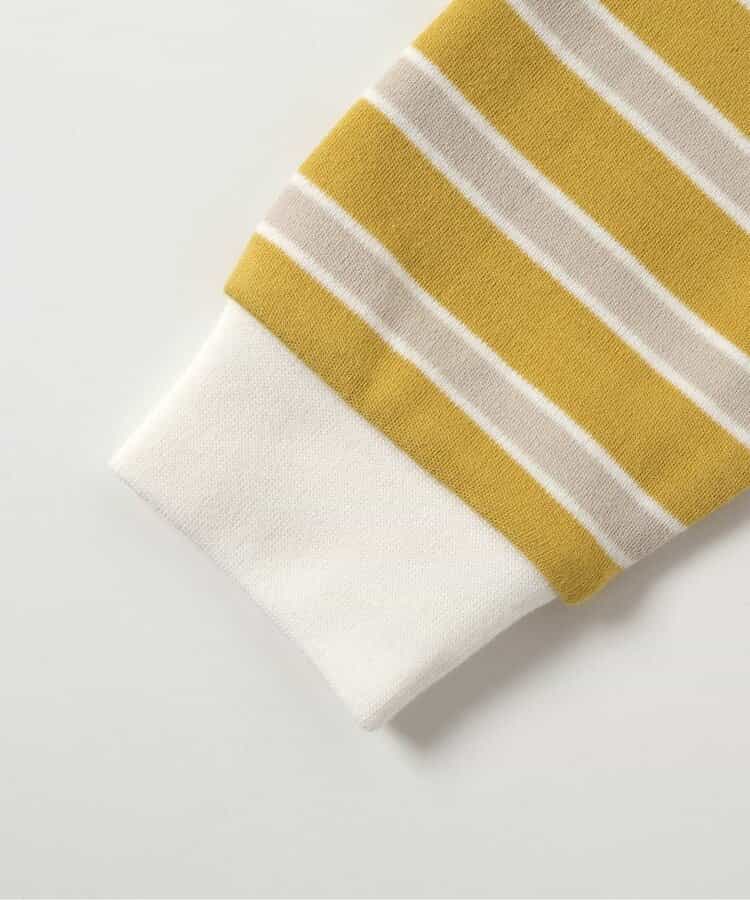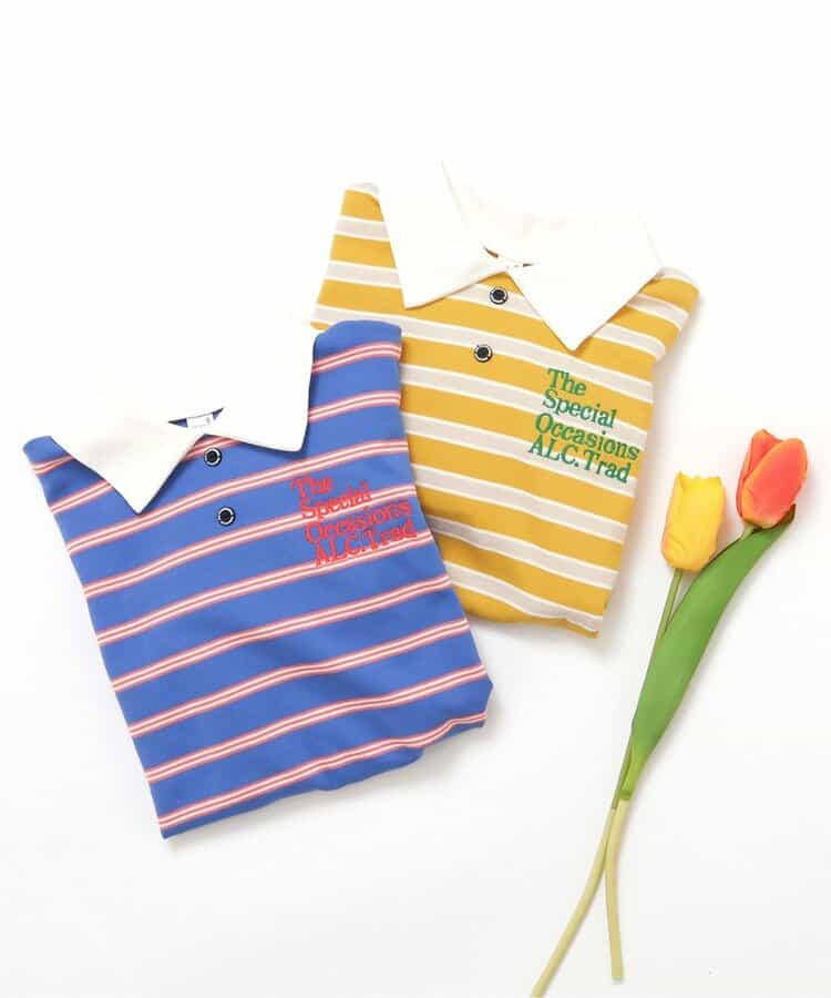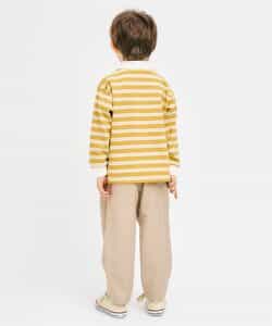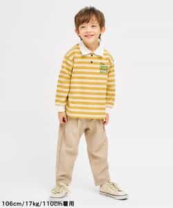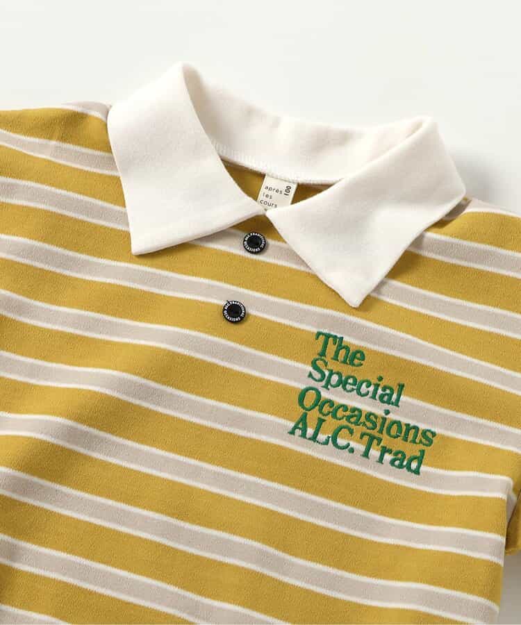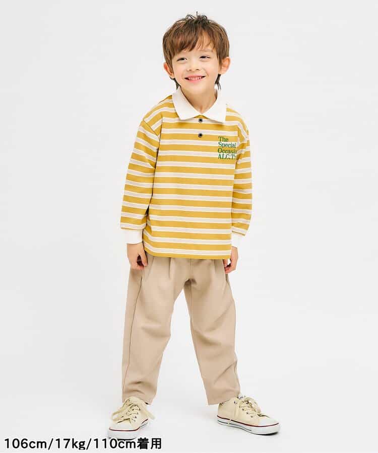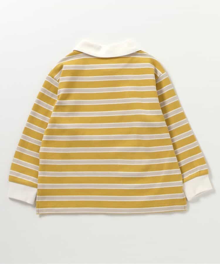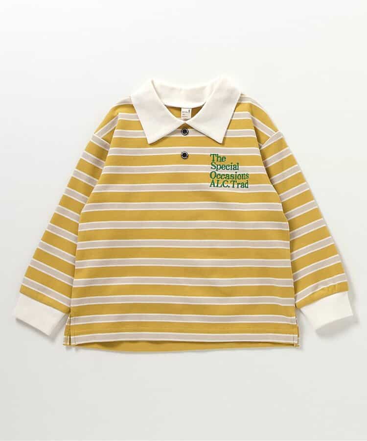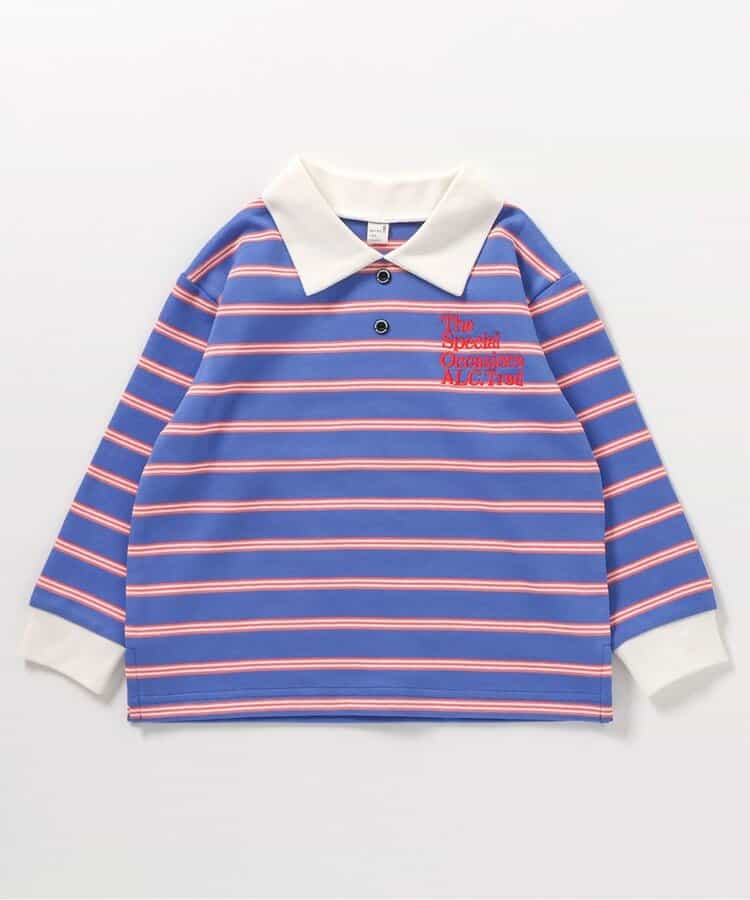 衿やボタンが付いたポロシャツ風のロンT。配色がおしゃれなマルチボーダーでコーデの主役に♪胸元のロゴ刺繍もポイントです◎パンツスタイルはもちろん、スカート合わせもオススメ◎男の子も女の子も楽しめるデザインです。