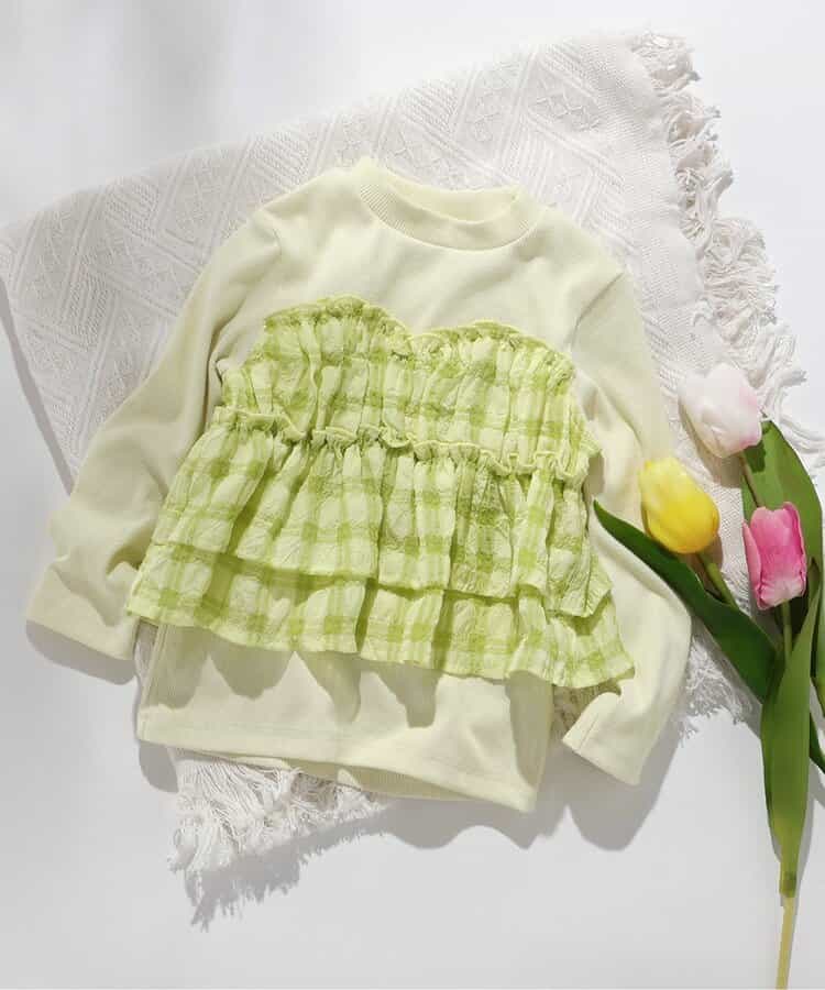 apres les cours(アプレレクール)の長袖Tシャツ「WEB限定 シアーチェックドッキングトップス」は、ナチュラルなスタイルにさりげなくデザインをプラスしたおしゃれアイテム*