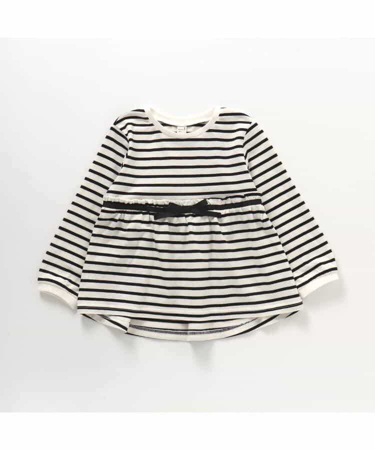 apres les cours(アプレレクール)の長袖Tシャツ「リボンボーダーペプラムTシャツ」は、ナチュラルなスタイルにさりげなくデザインをプラスしたおしゃれアイテム*