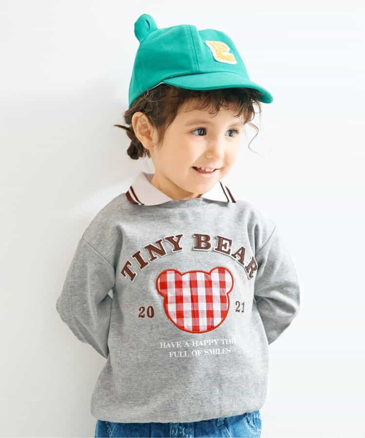 カレッジ風デザインの襟付き長袖Tシャツ。ギンガムチェック柄のくまのアップリケがポイント!チョコミントみたいなカラーが可愛い♪男の子も女の子もおすすめ◎ゆったりデニムとあわせて古着っぽく着こなしたり、プリーツスカートを合わせてガーリーにも着られます。