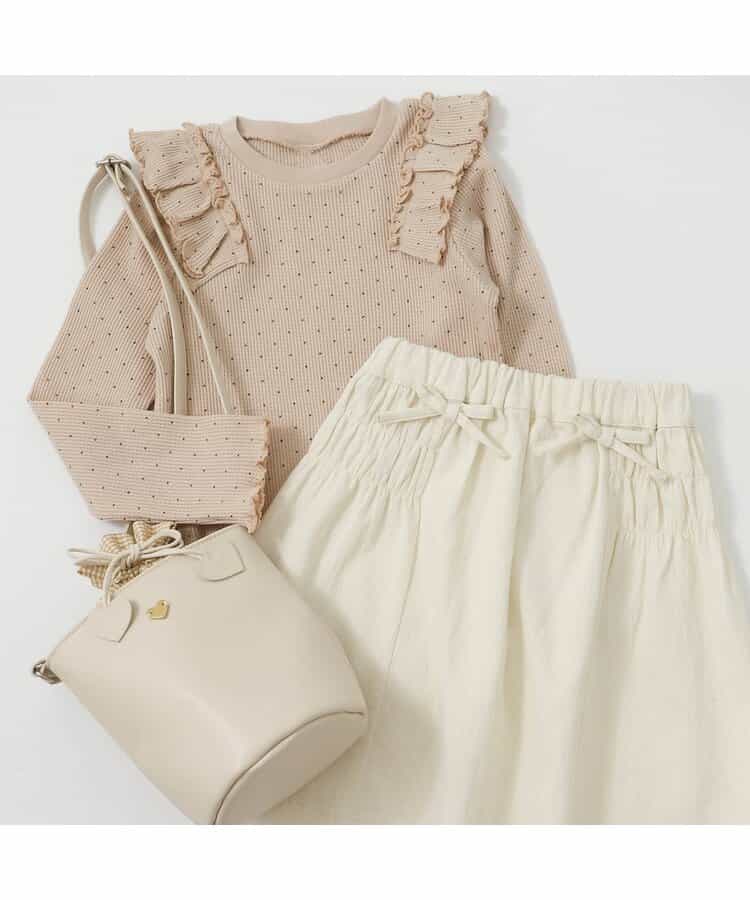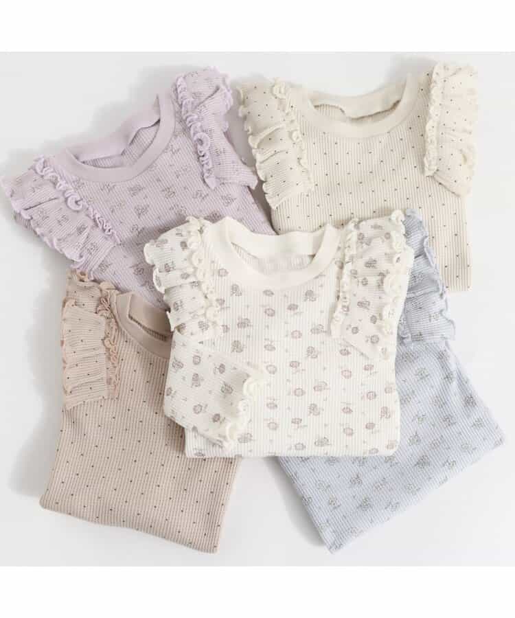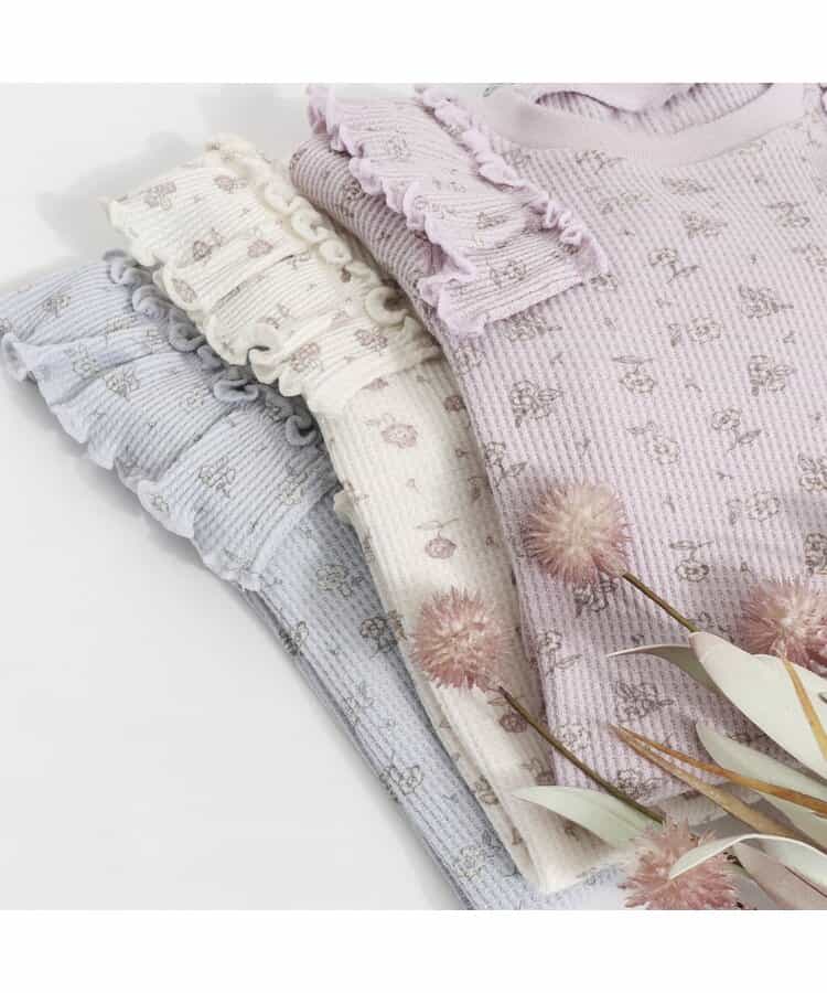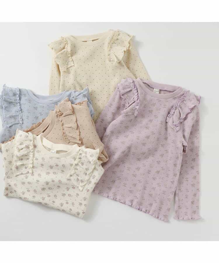 apres les cours(アプレレクール)の長袖Tシャツ「肩フリルワッフルTシャツ」は、ナチュラルなスタイルにさりげなくデザインをプラスしたおしゃれアイテム*