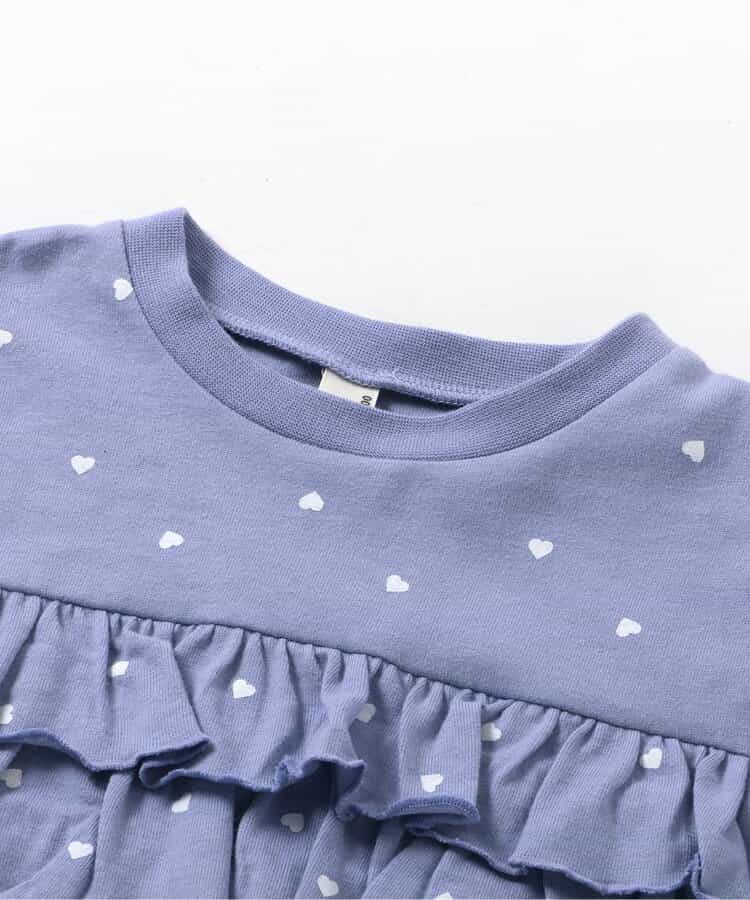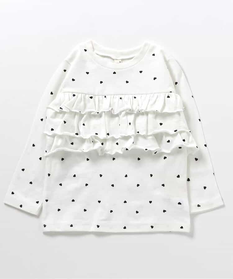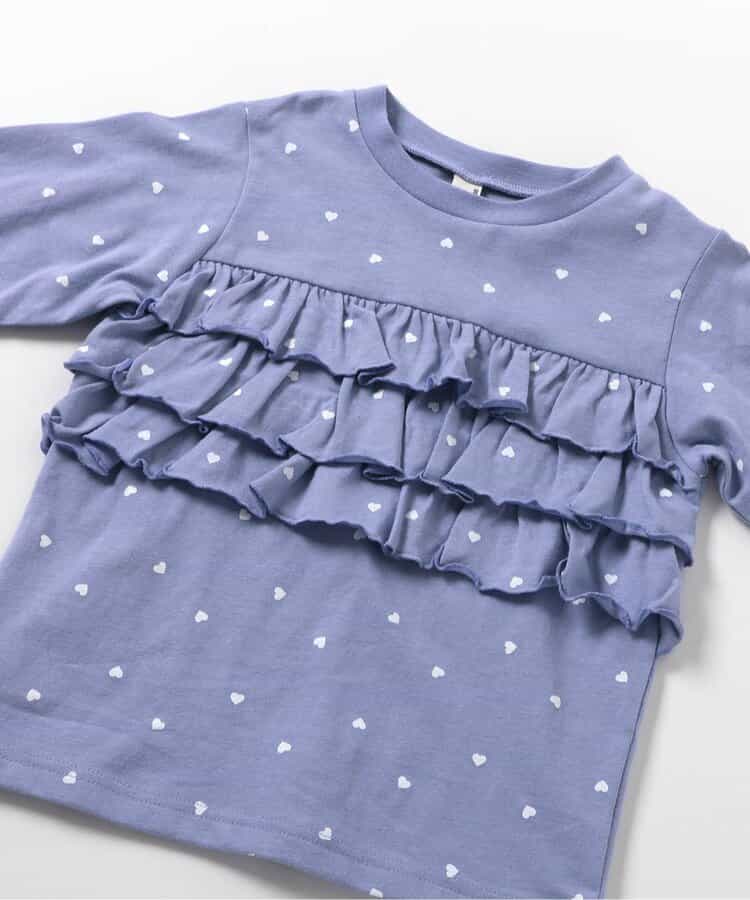 たっぷりフリルでカジュアルなロンTがガーリーな印象に♪合わせるボトムスを選ばないのもうれしいポイント!コットン100%でデイリーに使っていただけます◎【POINT】・フロントのフリルが最大のポイント♪・コットン100%で着心地◎・どんなボトムスにも合わせやすいデザイン・WEBだけの限定アイテム!【COLOR】・カジュアル度高めのボーダー・ハートの総柄がかわいいアイボリー、パープル・フリルの配色がおしゃれなピンク