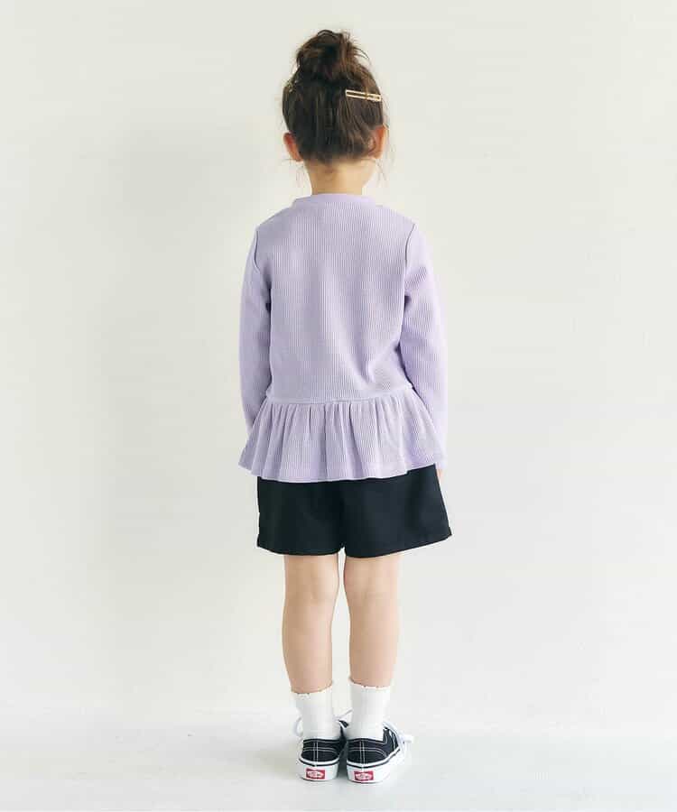 ふわっと広がるペプラムのシルエットが可愛いです。腰の辺りから広がっているので、細身のパンツと合わせるとスッキリ見えます。 暖かくなってきたらショートパンツと合わせたいです。 ペラペラではなく、でも厚すぎず、今の時期でもアウターと合わせれば使える生地感です。 118cm、18kgの娘で130cmを着用しており、手が2/3ほど隠れる袖丈で、裾はヒップがほぼ隠れる丈感です。 #PR