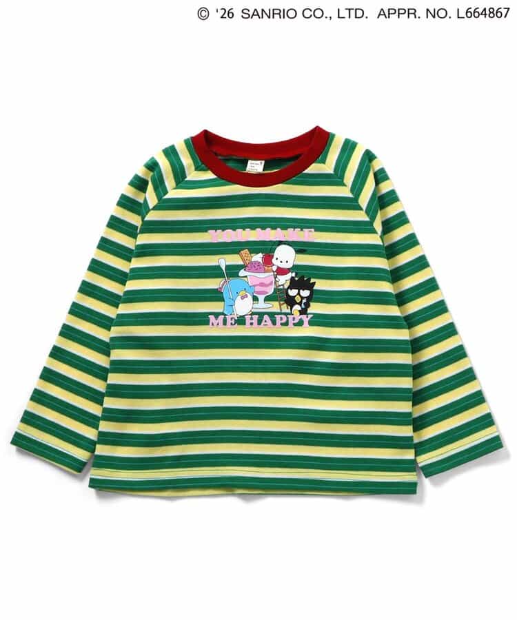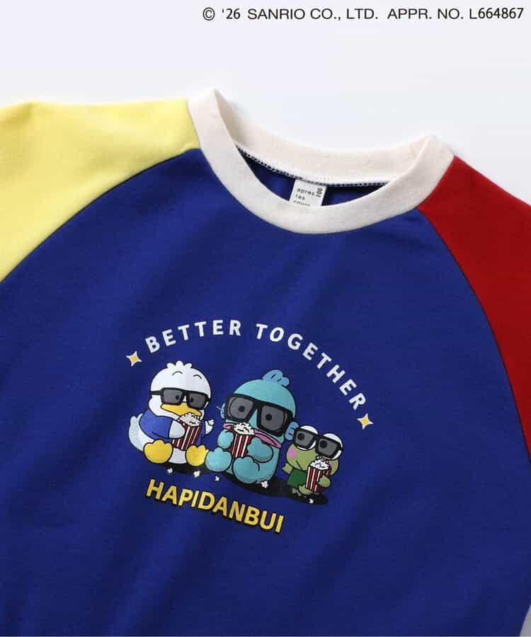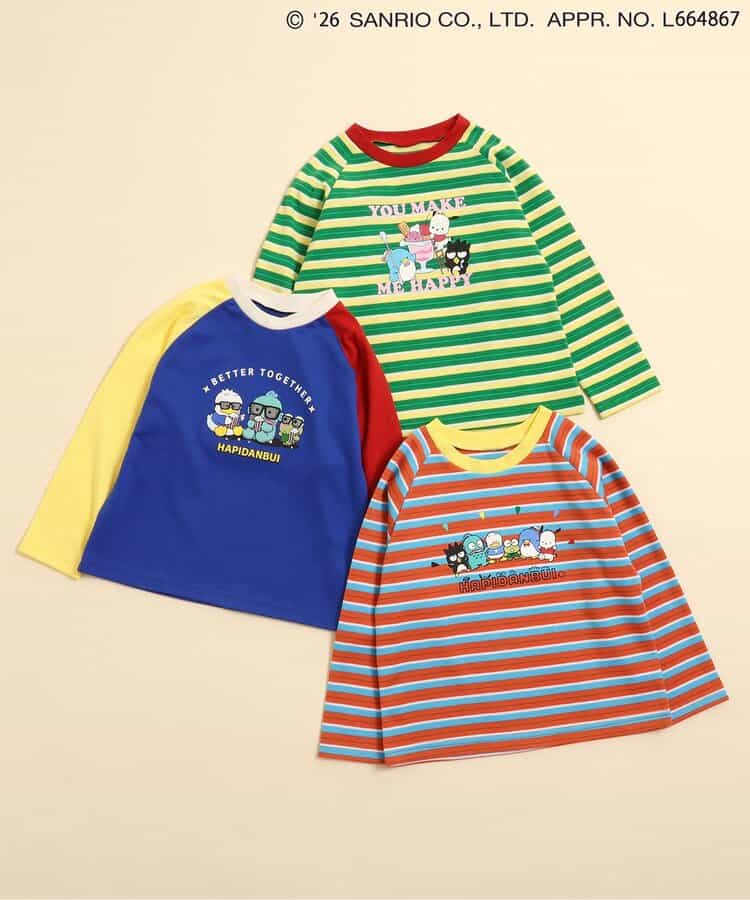 【1/29(木)お昼12時~発売予定】 ※販売日は前後する場合がございます。 ≪子供服 apres les coursの「サンリオキャラクターズ」コレクション≫ 明るく元気なカラーリングが目を惹く、はぴだんぶいのTシャツ。カジュアルに着られるデザインで、男の子コーデにも取り入れやすい1枚♪デイリー使いにもおすすめです。「サンリオキャラクターズ」コレクションはこちら>>
