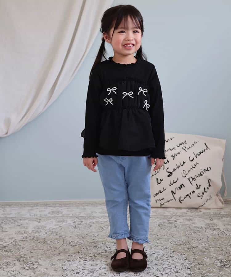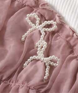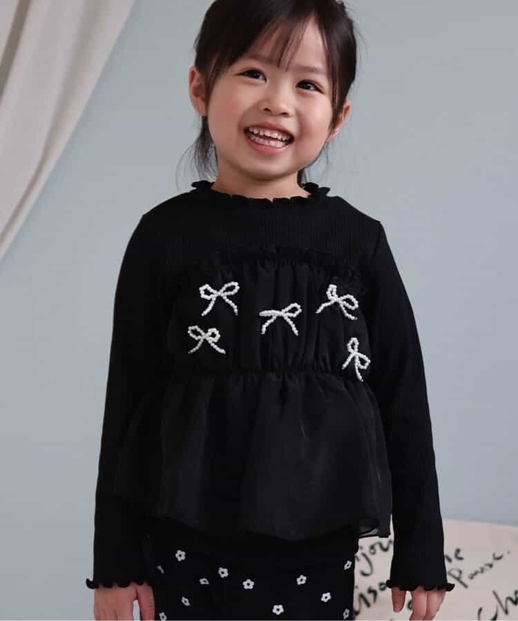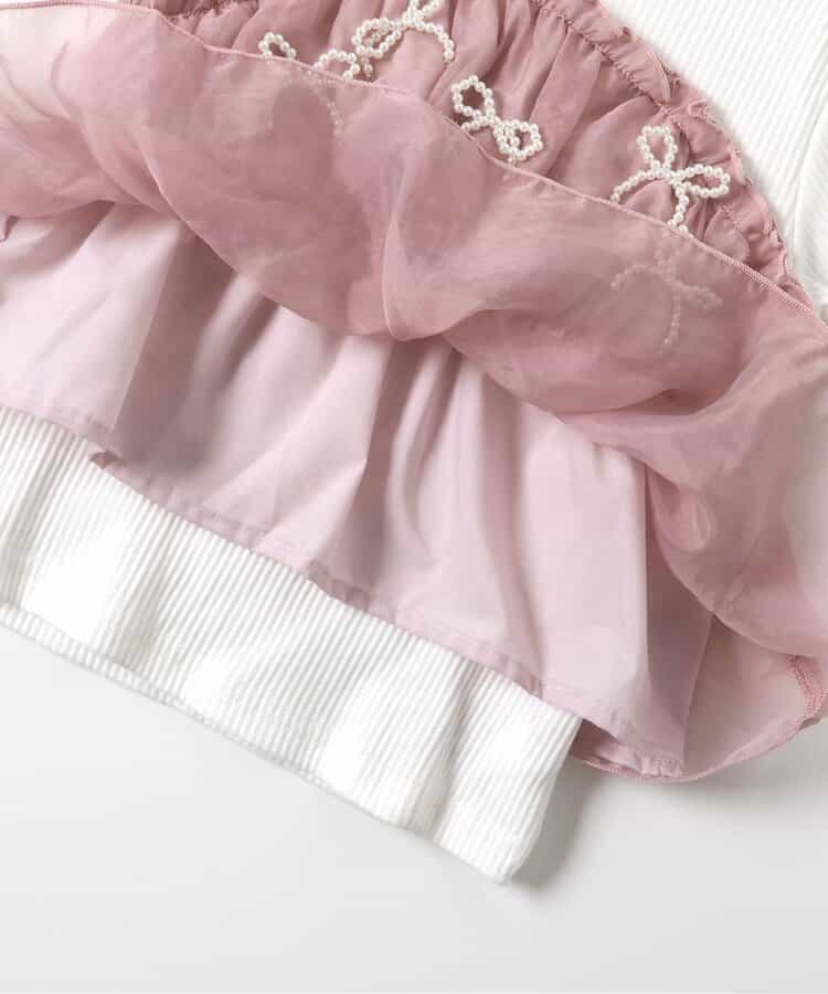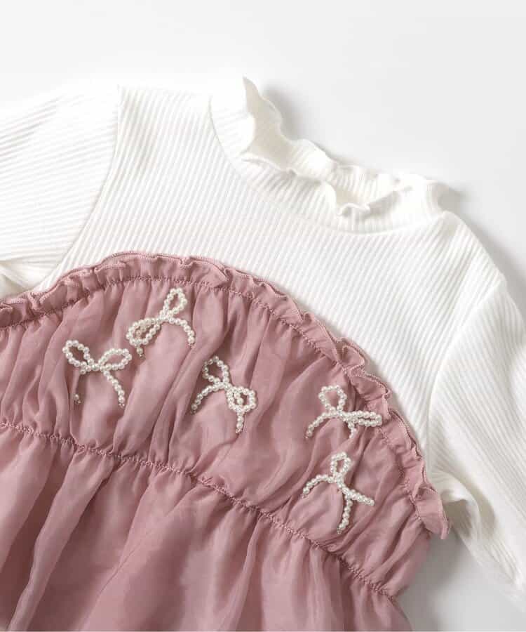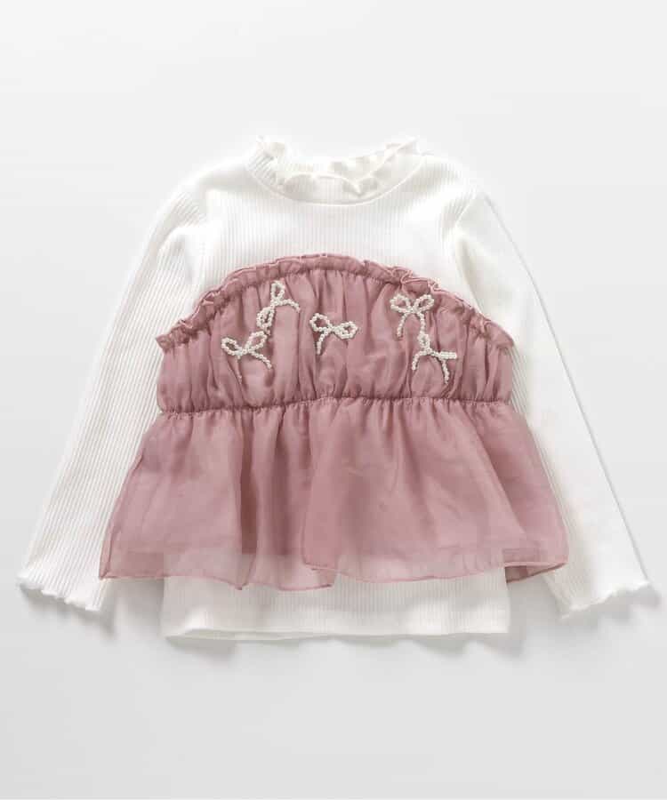 apres les cours(アプレレクール)の長袖Tシャツ「パールリボンドッキングトップス」は、ナチュラルなスタイルにさりげなくデザインをプラスしたおしゃれアイテム*<お取り扱いのご注意>この製品は特殊加工(スパンコール・ラインストーン・スタッド等)を使用しております。永久的なものではなく、着用中の強い摩擦や洗濯を繰り返すことにより、破損したり、光沢が消失していく可能性があります。できるだけ美しくご利用頂く為に次の事にご留意下さい。○ もみ洗い、タンブラー乾燥は避けて下さい。○ 脱水はネットに入れ、弱くかけて下さい。○ 装飾品にはアイロンを当てないで下さい。