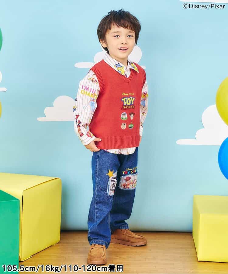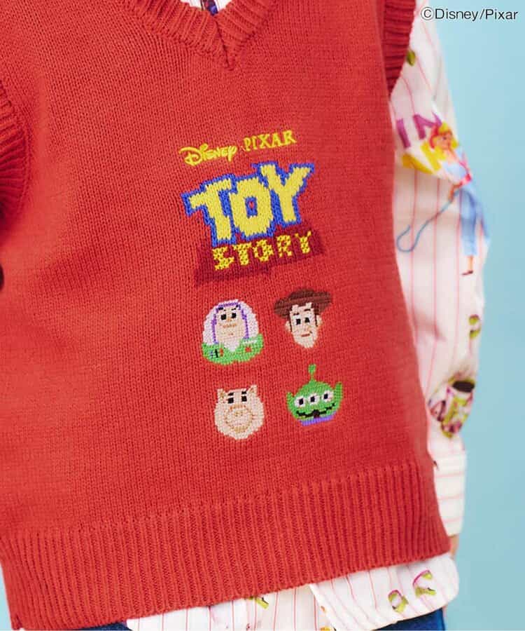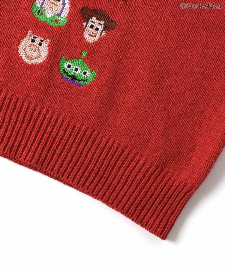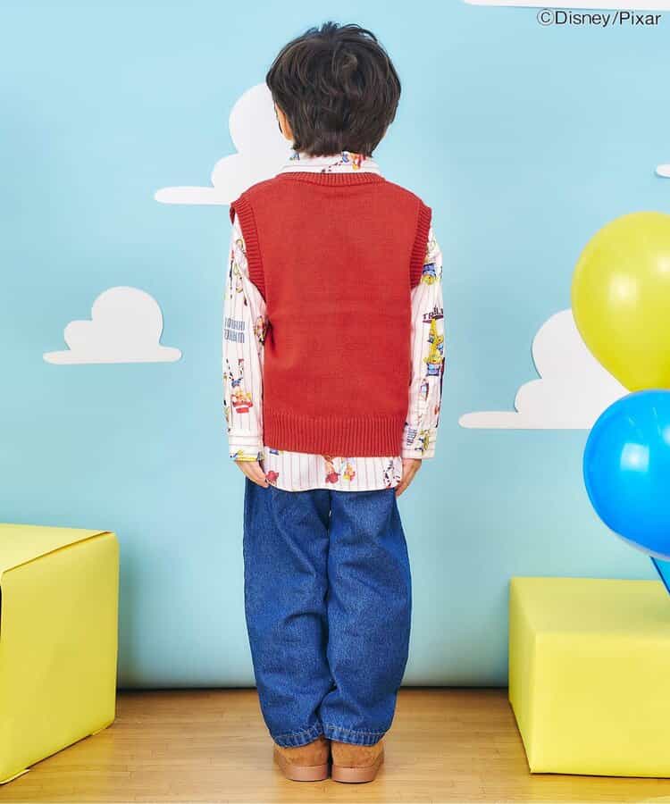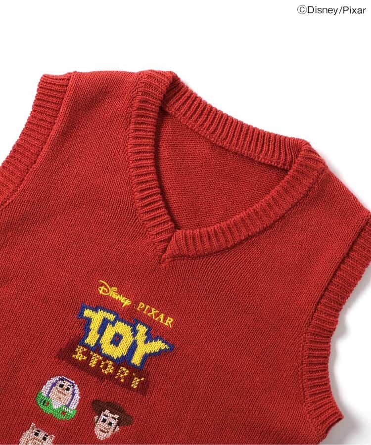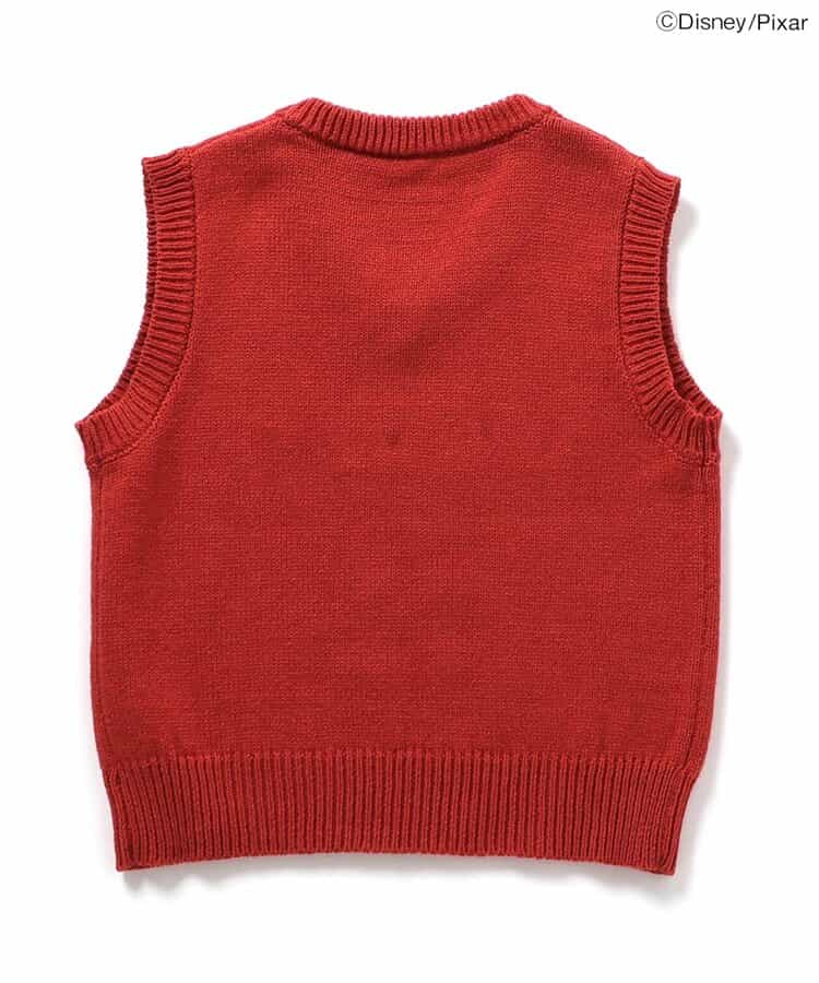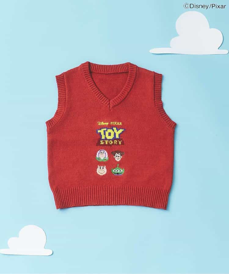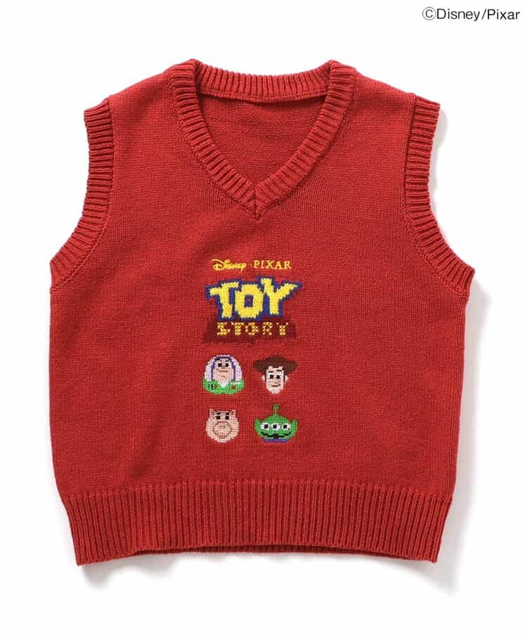 ≪子供服 apres les coursの『トイ・ストーリー』コレクション≫ディズニーキャラクターニットベストは、シンプルなデザインながらもドット調のキャラクターがとってもかわいい!『トイ・ストーリー』らしいレッドがコーデのポイントに。『ディズニーキャラクター総柄ストライプシャツ/トイストーリー』と合わせてトイ・ストーリーコーデもオススメ◎キャラクターたちといっしょに重ね着スタイルを楽しんで♪