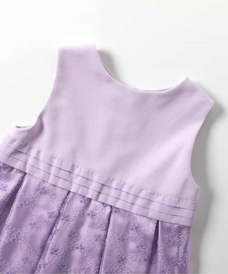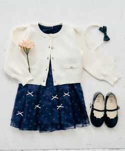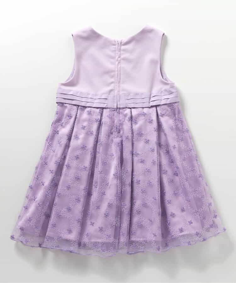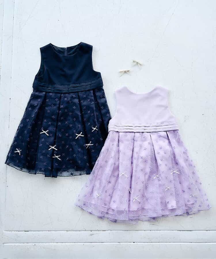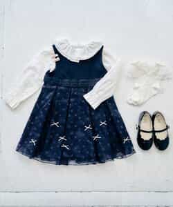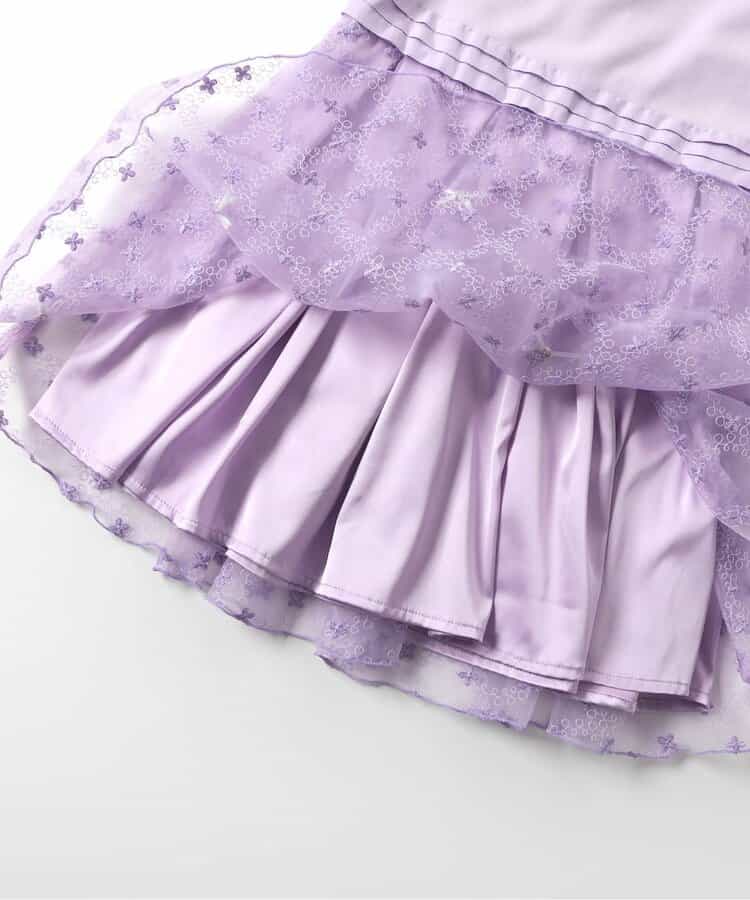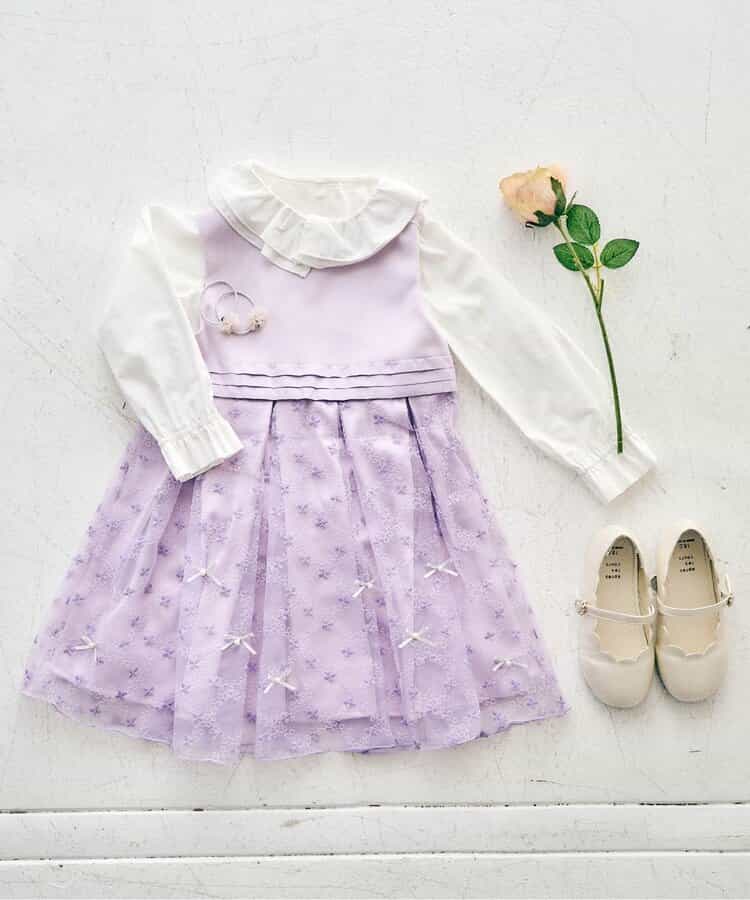 シンプルな無地のトップス部分に、お花の刺繍とリボンがかわいいチュールスカートが乙女心をくすぐります。