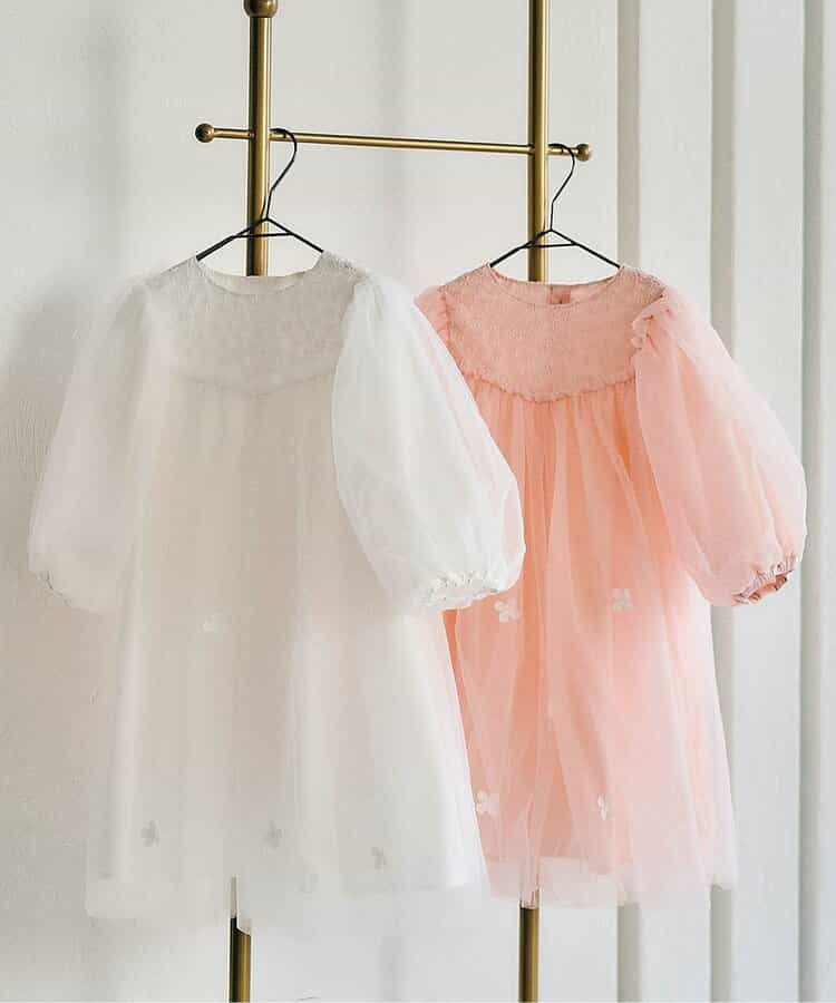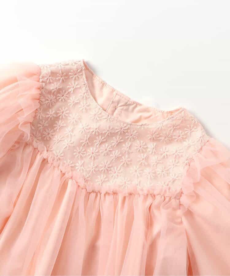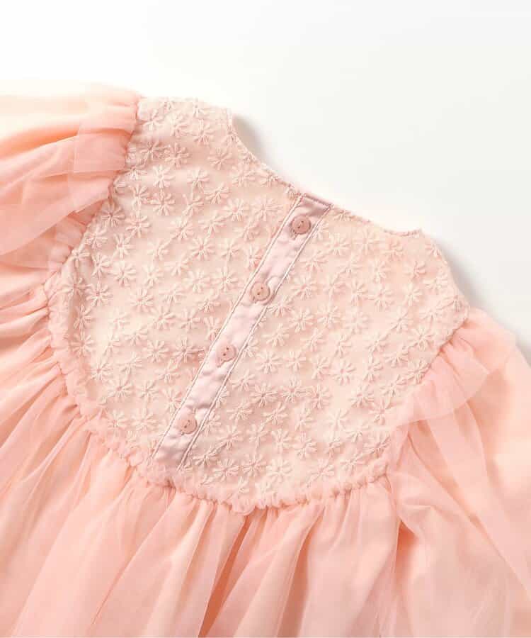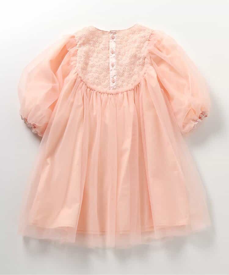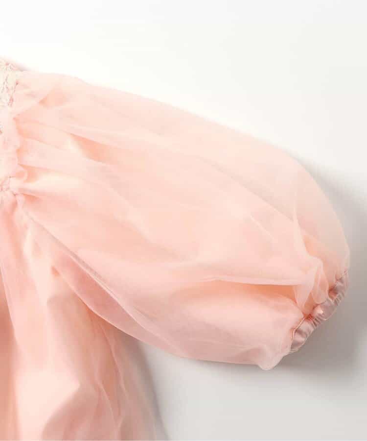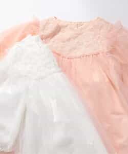 ヨーク部分にお花柄のレースをあしらったとびきりキュートなワンピース。チュールを重ねたデザインが乙女心をくすぐります・・♪バルーン調のお袖、ふんわりと広がるシルエットや優しいカラーが春らしい1着です*