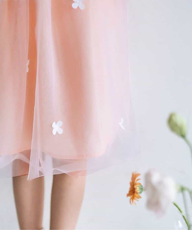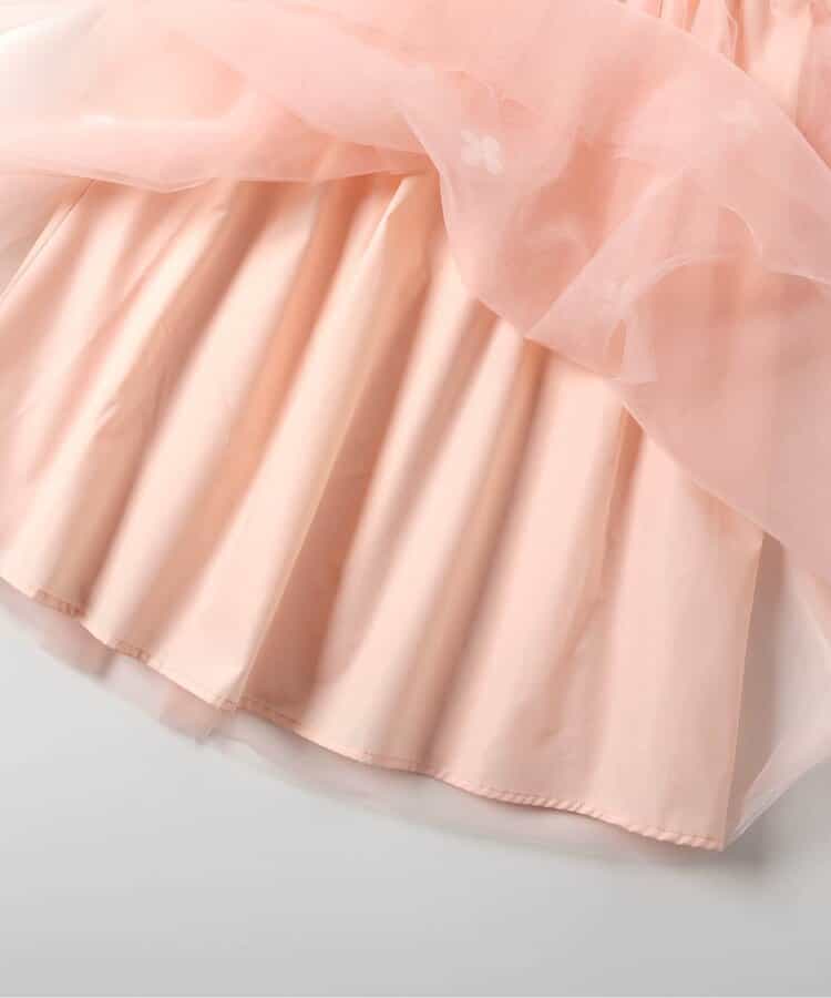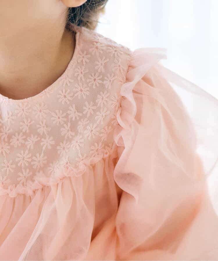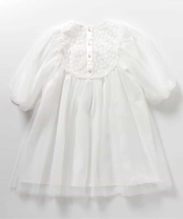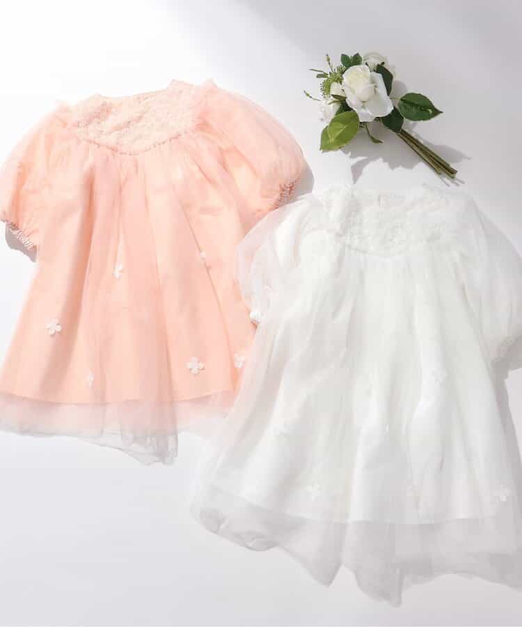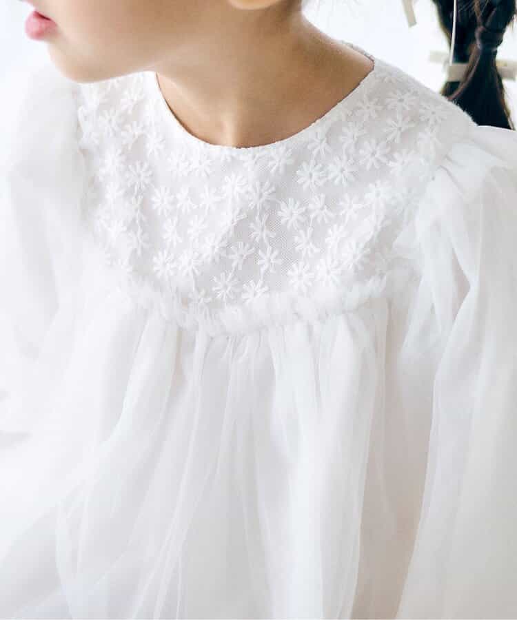 ヨーク部分にお花柄のレースをあしらったとびきりキュートなワンピース。チュールを重ねたデザインが乙女心をくすぐります・・♪バルーン調のお袖、ふんわりと広がるシルエットや優しいカラーが春らしい1着です*