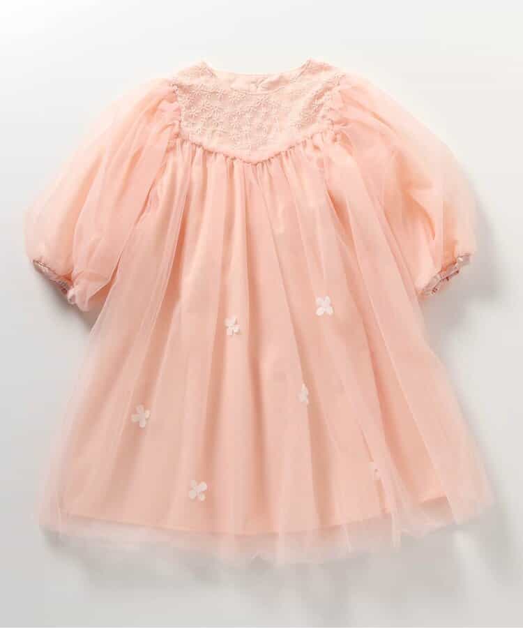 ヨーク部分にお花柄のレースをあしらったとびきりキュートなワンピース。チュールを重ねたデザインが乙女心をくすぐります・・♪バルーン調のお袖、ふんわりと広がるシルエットや優しいカラーが春らしい1着です*
