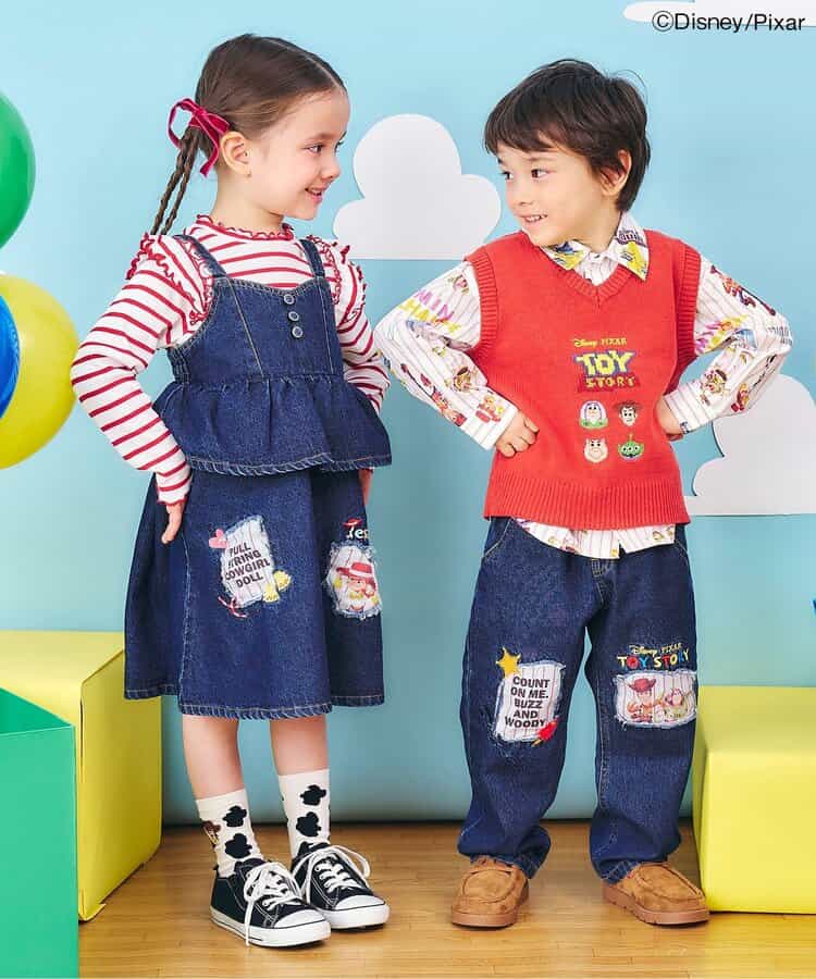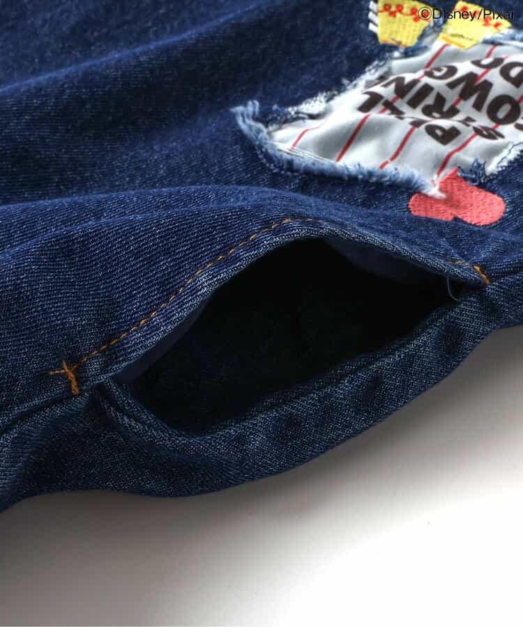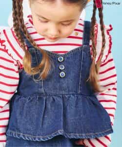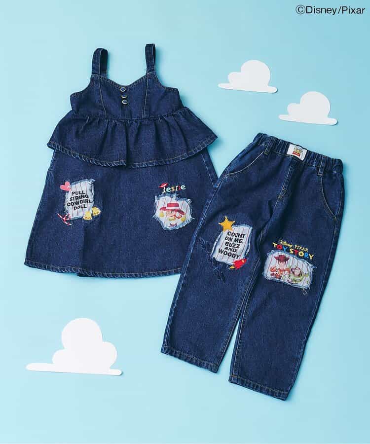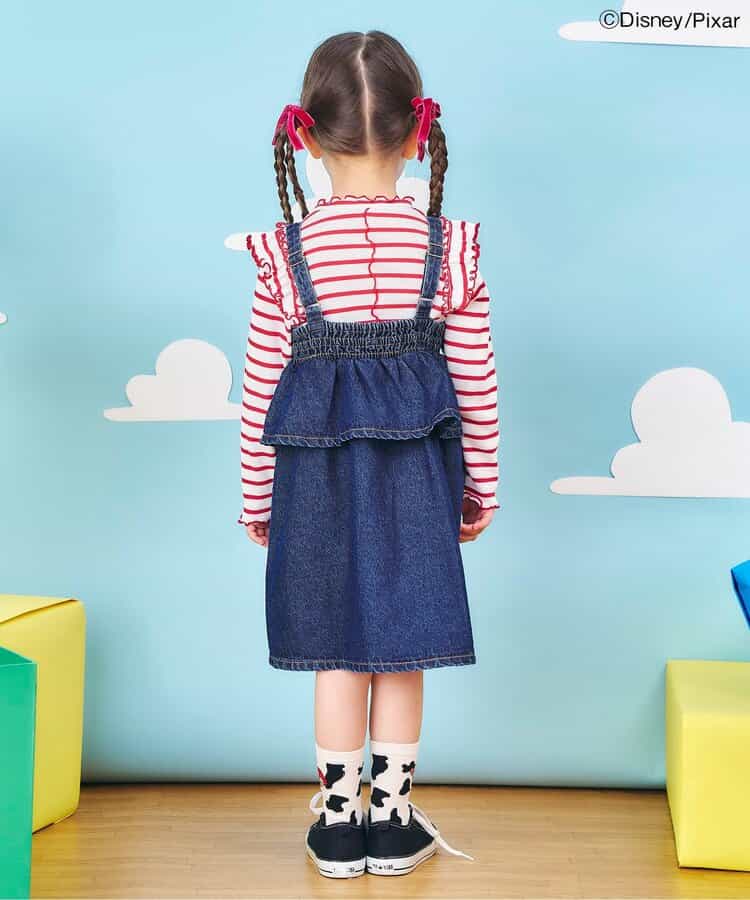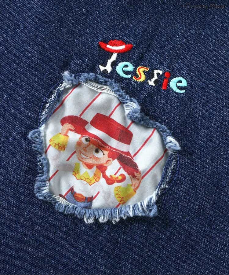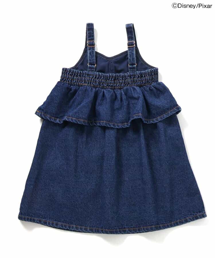 ジェシーモチーフのデニム生地のジャンパースカートは、ポップでカジュアルながらもギャザーがたっぷりなシルエットでガーリーな印象に♪古着風のダメージ加工からのぞくジェシーや、かわいいモチーフの刺繍がポイント!ショルダーは調節可能、左右ポケット付きで機能性も◎バックはゴムになっているので、お着替えもしやすいのもうれしいポイントです。インナーを変えればシーズン関係なく着ていただけます。おそろいのデニムパンツもあるので、お友達やきょうだいとリンクコーデもオススメ!