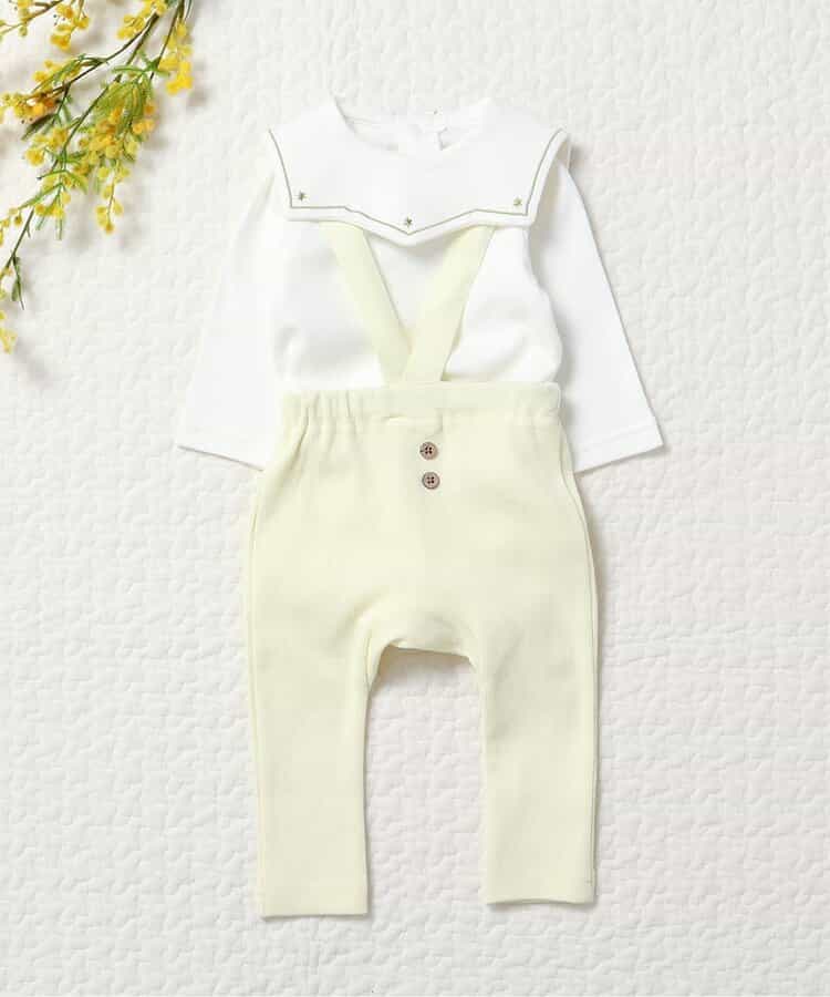apres les cours(アプレレクール)のパンツ「サスペンダー付きリブパンツ」は、ナチュラルなスタイルにさりげなくデザインをプラスしたおしゃれアイテム*