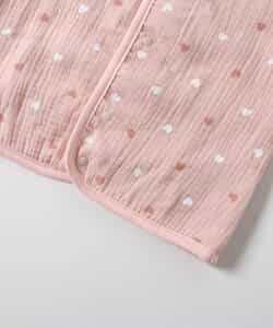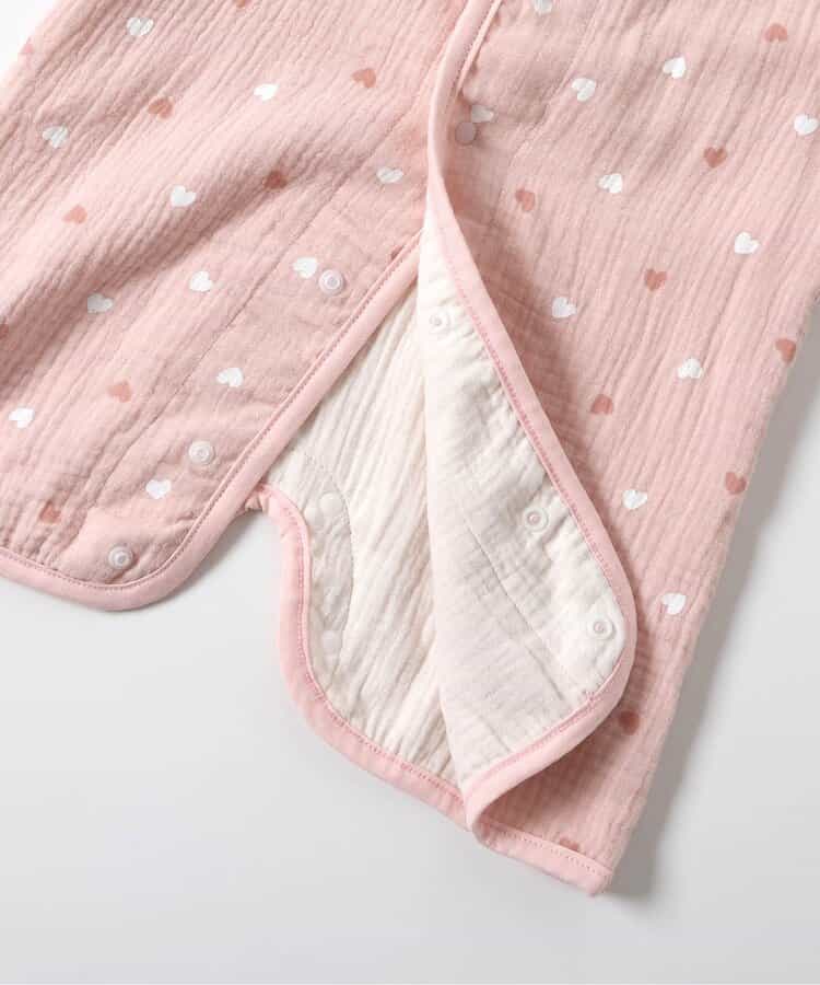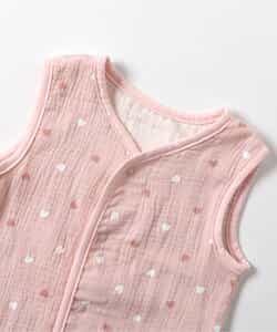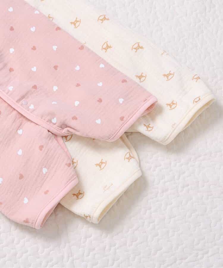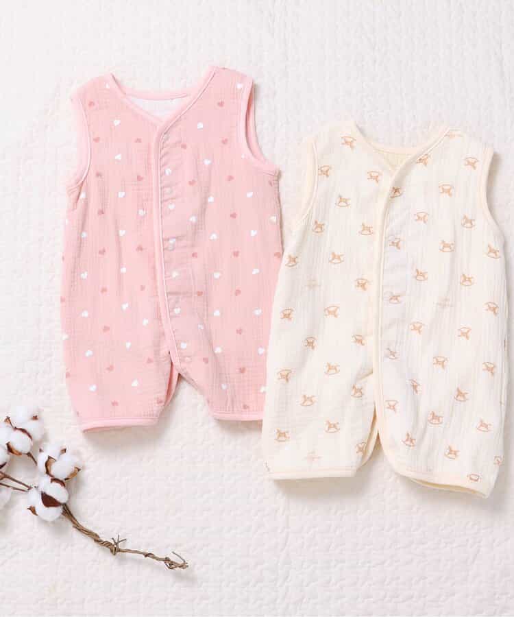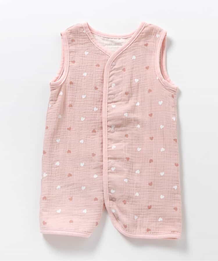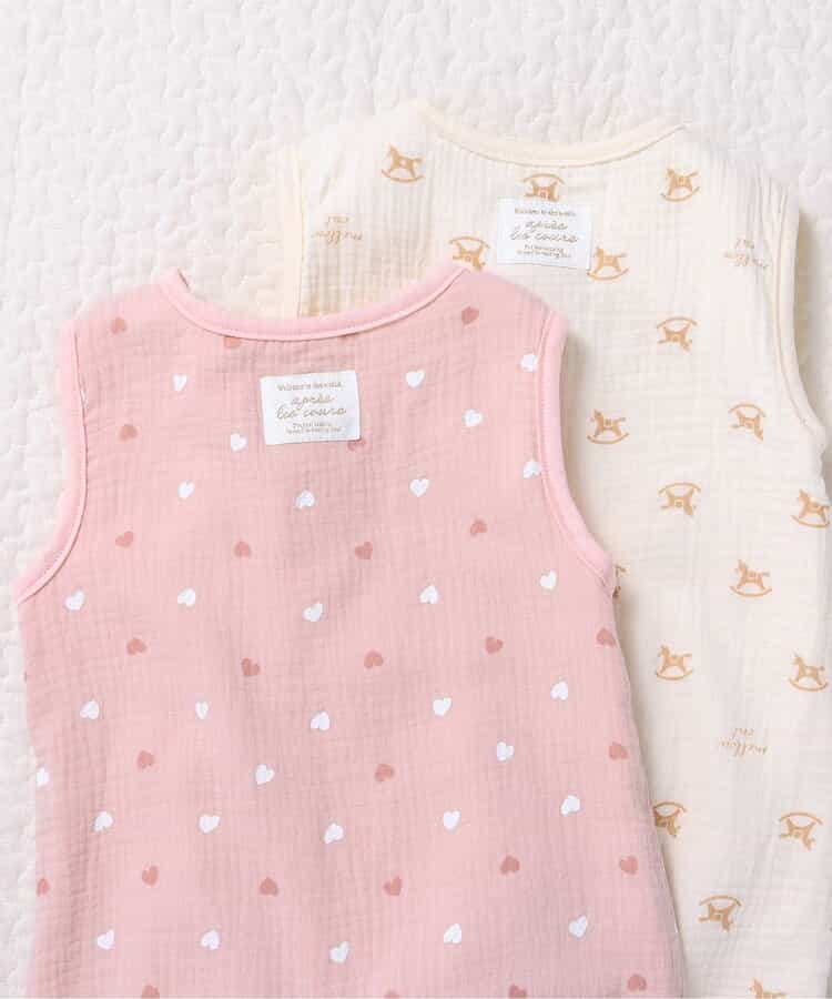 apres les cours(アプレレクール)の胴着・ベスト「総柄ガーゼスリーパー」は、やさしいニュアンスのナチュラルなデザイン。ベビーのコーデにおしゃれさをプラス♪