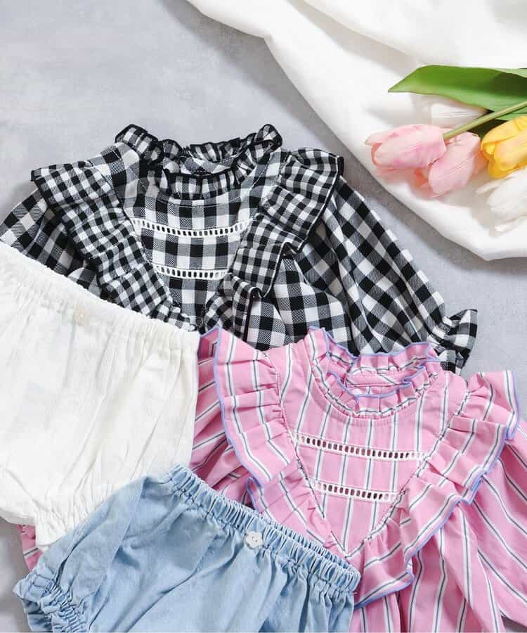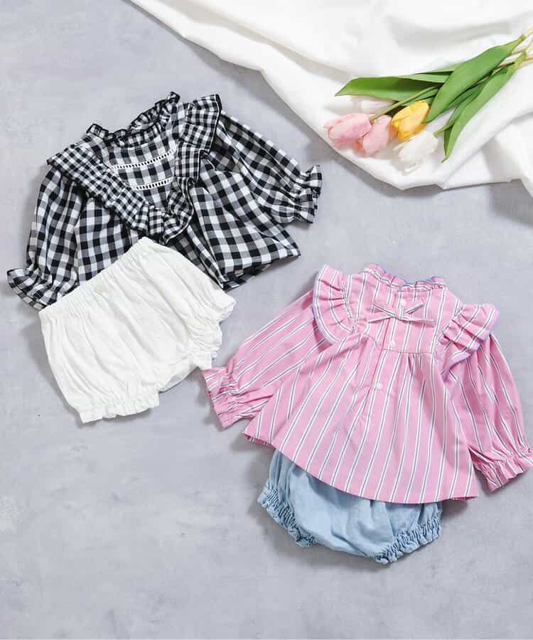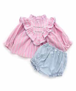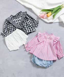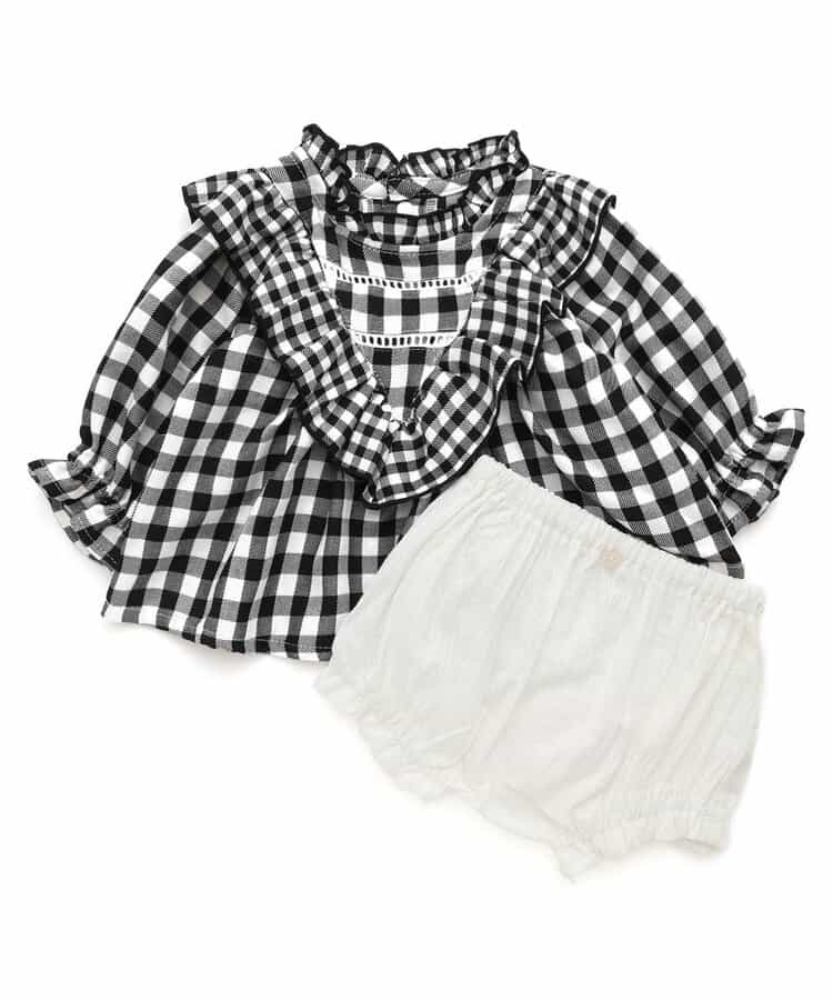 apres les cours(アプレレクール)の雑貨・小物「【リンク】 フリルセットアップ」は、やさしいニュアンスのナチュラルなデザイン。ベビーギフトや出産祝いの主役にも♪