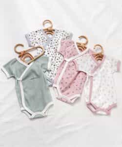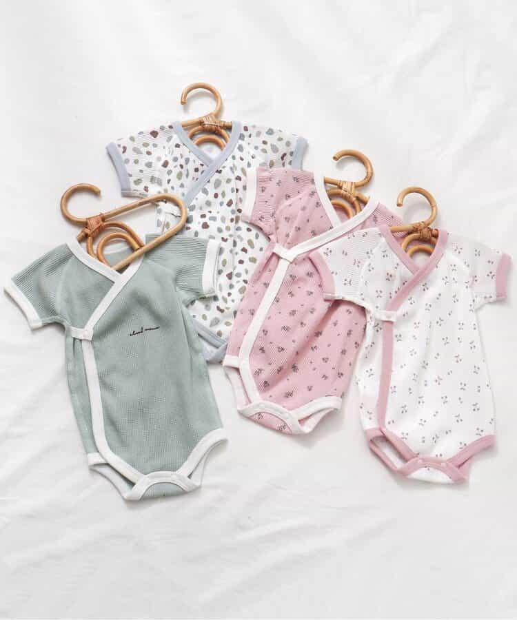 apres les cours(アプレレクール)の肌着「ベビー半袖ワッフルグレコ肌着」は、やさしい色合いとデザインでベビーギフトや出産祝いにもおすすめ*