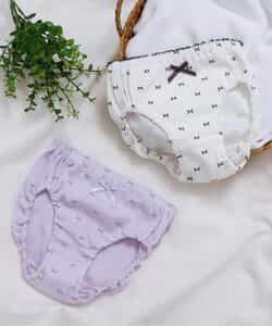 apres les cours(アプレレクール)のパンツ・ショーツ「GIRLSリボン総柄パンツ」は、手頃な価格とおしゃれなデザインが人気!毎日着るものだからかわいいインナーで♪