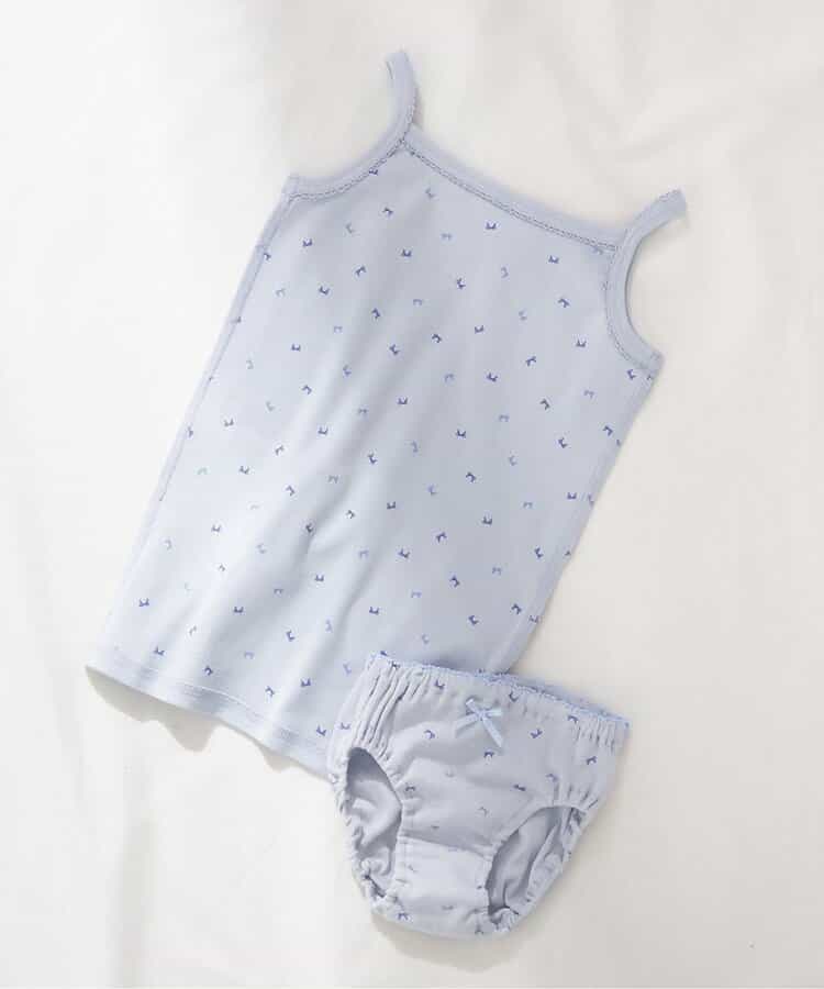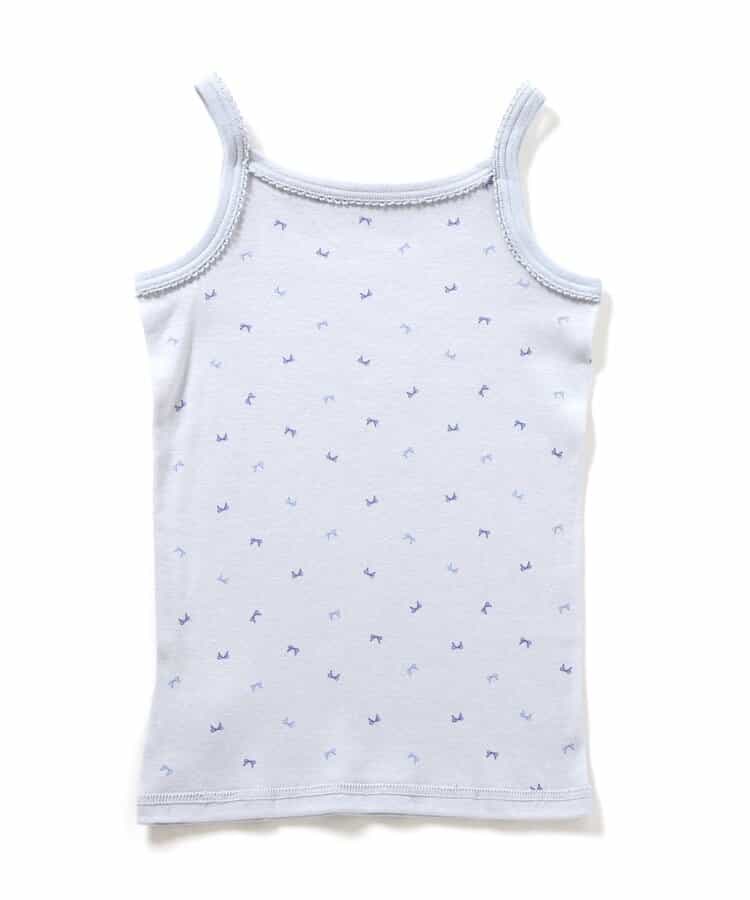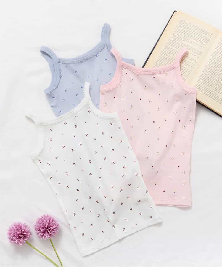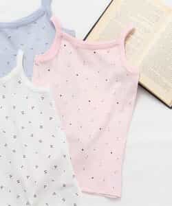 apres les cours(アプレレクール)の肌着「GIRLSフライス総柄キャミソール」は、手頃な価格とおしゃれなデザインが人気!毎日着るものだからかわいいインナーで♪