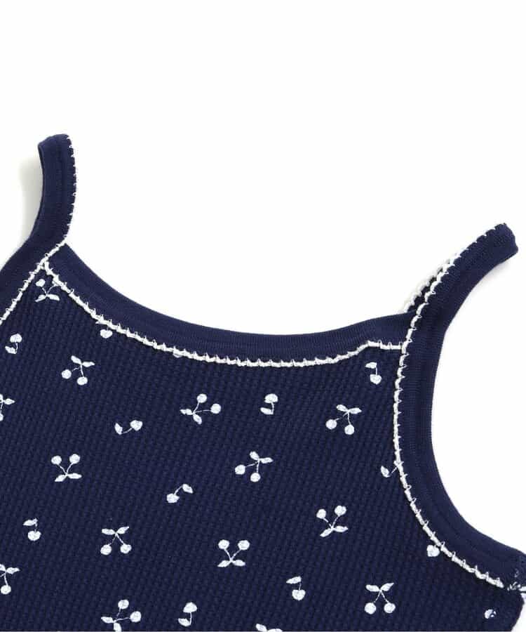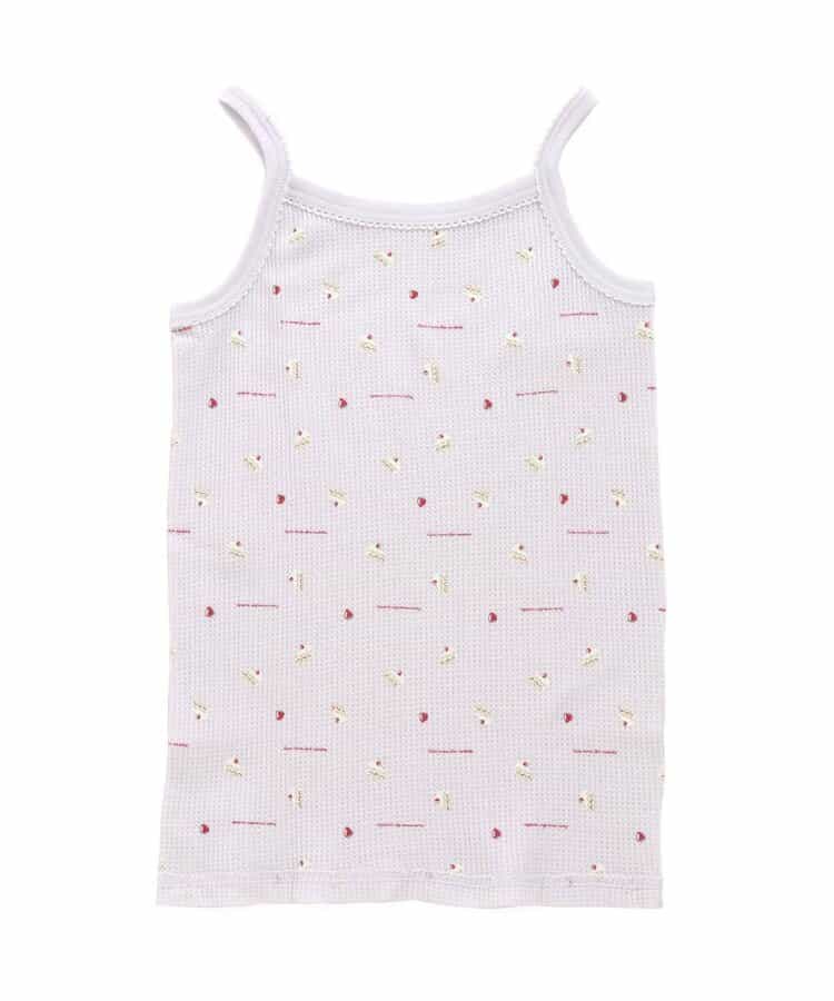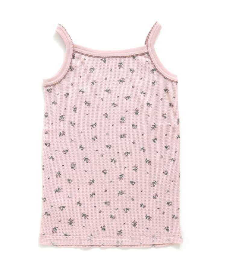 apres les cours(アプレレクール)の肌着「GIRLSワッフル総柄キャミソール」は、手頃な価格とおしゃれなデザインが人気!毎日着るものだからかわいいインナーで♪