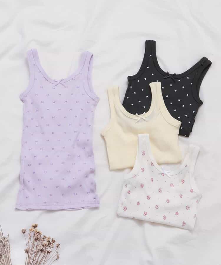 apres les cours(アプレレクール)の肌着「深あきインナーリブタンクトップ」は、手頃な価格とおしゃれなデザインが人気!毎日着るものだからかわいいインナーで♪