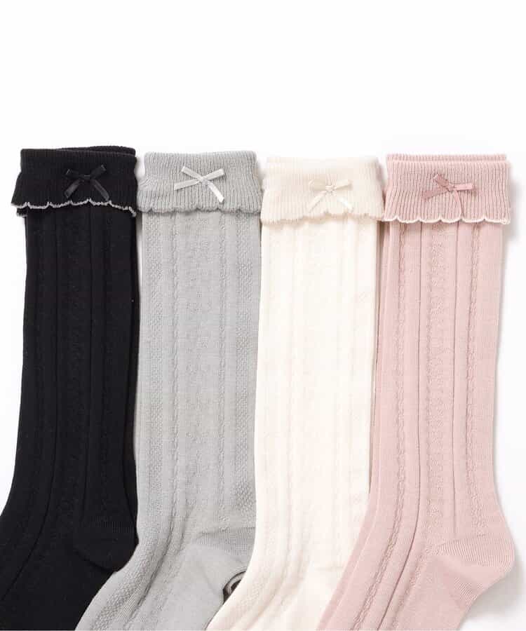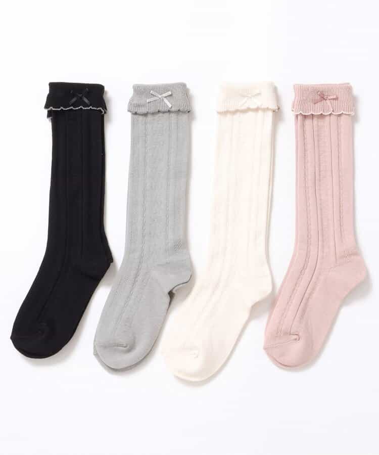 apres les cours(アプレレクール)のタイツ・ソックス「フリルハイソックス」は、足元からおしゃれになれるデザイン。おようふくとのスタイリングも楽しんで。靴下のSS・S・10-12cm・13-15cm、タイツの70-80cm・80-90cm・90-100cmには基本的に靴下に滑り止め加工がございます。(一部除外あり)