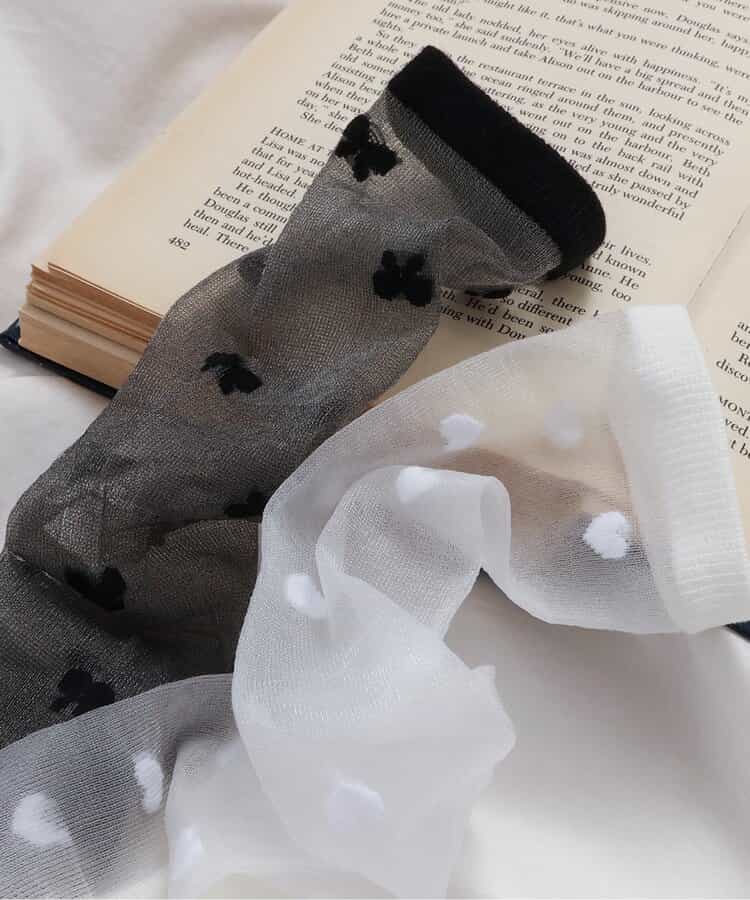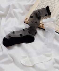 【12/4(木)21:00~販売】apres les cours(アプレレクール)のタイツ・ソックス「リボン・ハート柄シアーハイソックス」は、足元からおしゃれになれるデザイン。おようふくとのスタイリングも楽しんで。靴下のSS・S・10-12cm・13-15cm、タイツの70-80cm・80-90cm・90-100cmには基本的に靴下に滑り止め加工がございます。(一部除外あり)