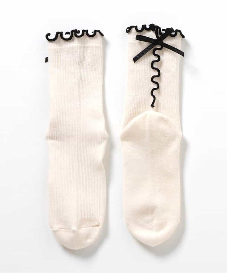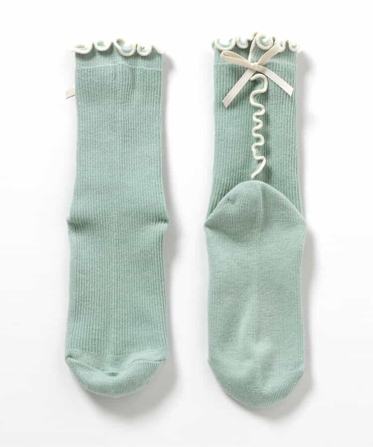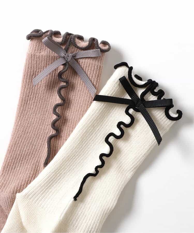 apres les cours(アプレレクール)のタイツ・ソックス「リボンメローソックス」は、足元からおしゃれになれるデザイン。おようふくとのスタイリングも楽しんで。靴下のSS・S・10-12cm・13-15cm、タイツの70-80cm・80-90cm・90-100cmには基本的に靴下に滑り止め加工がございます。(一部除外あり)