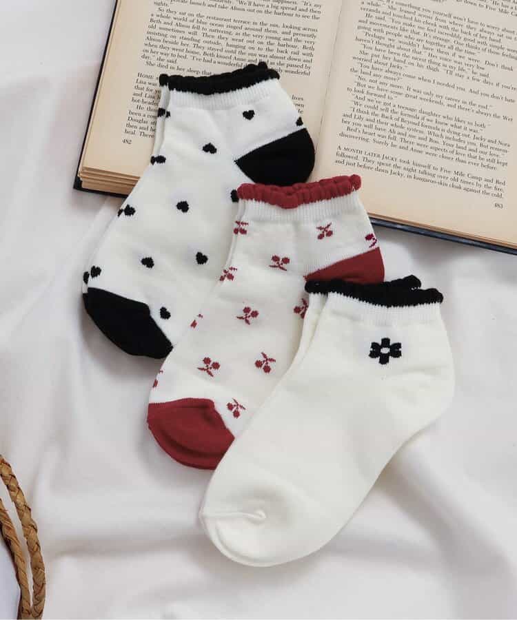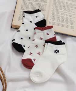 【12/11(木)21:00~販売】apres les cours(アプレレクール)のタイツ・ソックス「お花・ハート・さくらんぼ柄ショートソックス」は、足元からおしゃれになれるデザイン。おようふくとのスタイリングも楽しんで。靴下のSS・S・10-12cm・13-15cm、タイツの70-80cm・80-90cm・90-100cmには基本的に靴下に滑り止め加工がございます。(一部除外あり)※SHOPでは『3P』でまとめ販売しておりますが、オンラインストアでは単品での販売です。