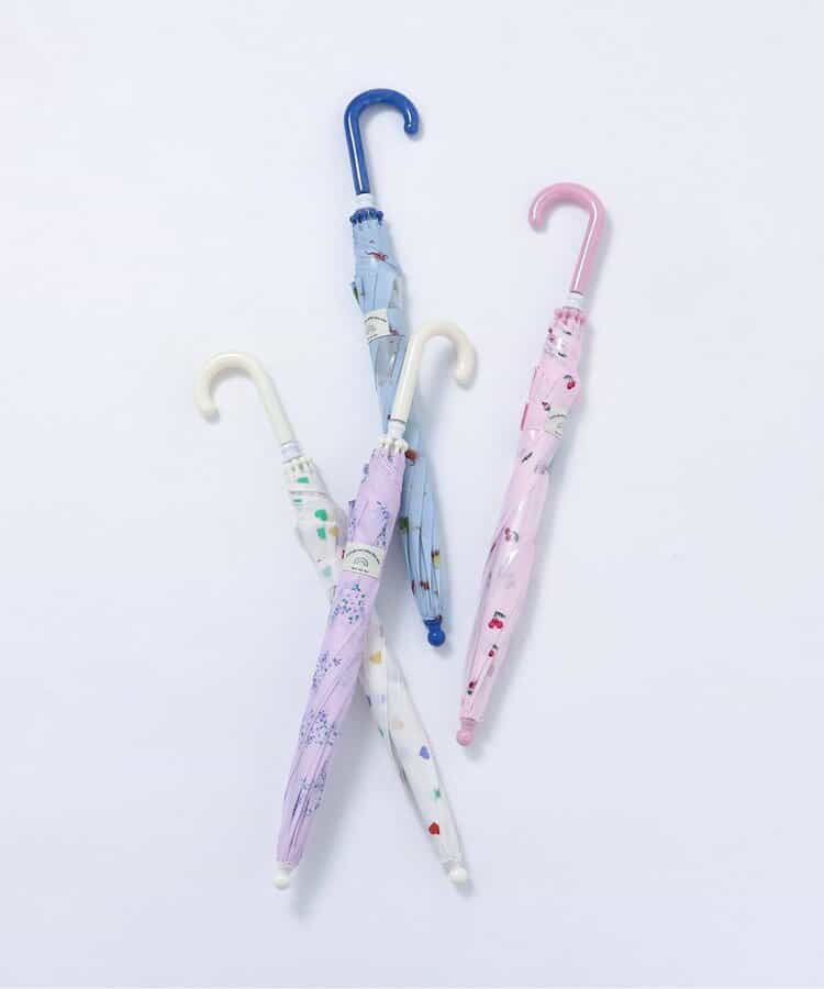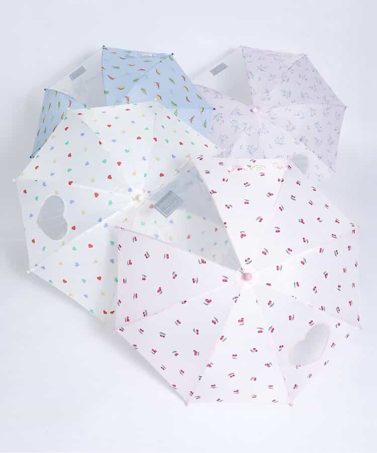 apres les cours(アプレレクール)のレイングッズ「花・ハート・さくらんぼ・恐竜柄傘」は、雨の日でも気持ちが明るくなるような楽しいデザイン。お気に入りのレイングッズでお出かけしよう♪