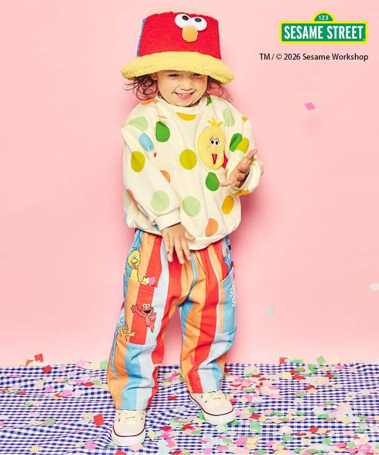 【1/1(木)あさ9時~発売予定】 ※販売日は前後する場合がございます。 ≪子供服 apres les coursの「セサミストリート」コレクション≫ セサミストリートの仲間たちが登場! カラフルなボアハットでコーディネートが華やかに。 エルモのお顔もついていてとってもキュート♪ 暖かく、冬のおでかけにおすすめです。 2026年もセサミストリートの仲間たちと一緒に楽しくすごそう!セサミストリートコレクションはこちら>>