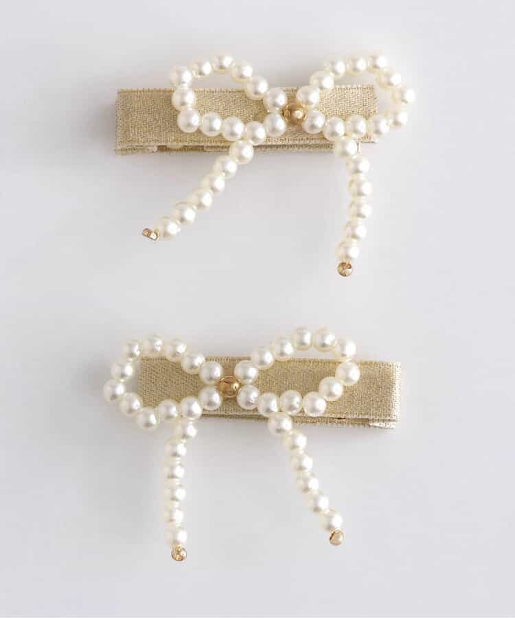 apres les cours(アプレレクール)のアクセサリー「パールリボンヘアクリップセット」は、どんなウェアとも相性抜群!おしゃれなコーデに仕上げてくれるアイテム*